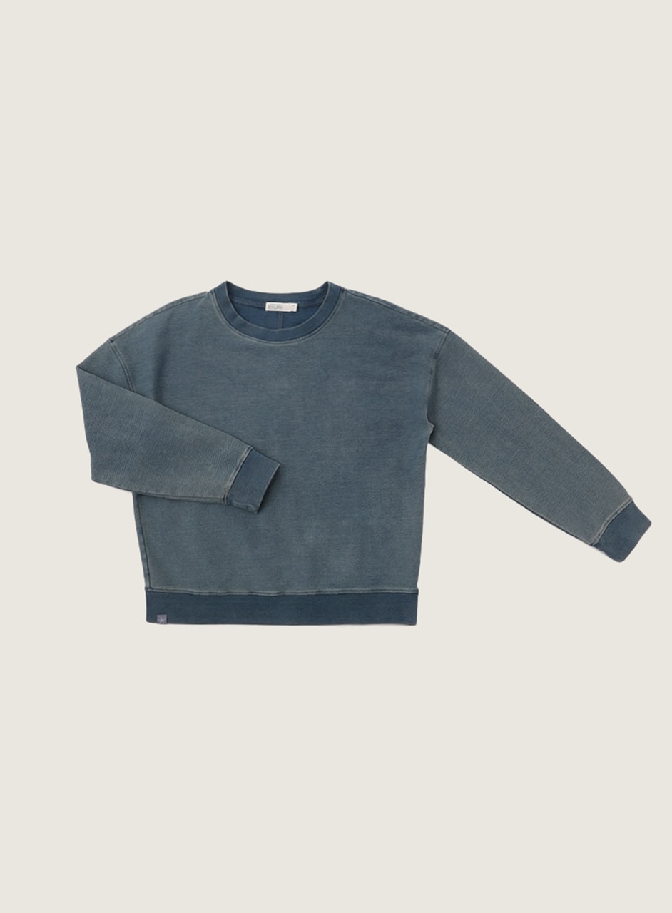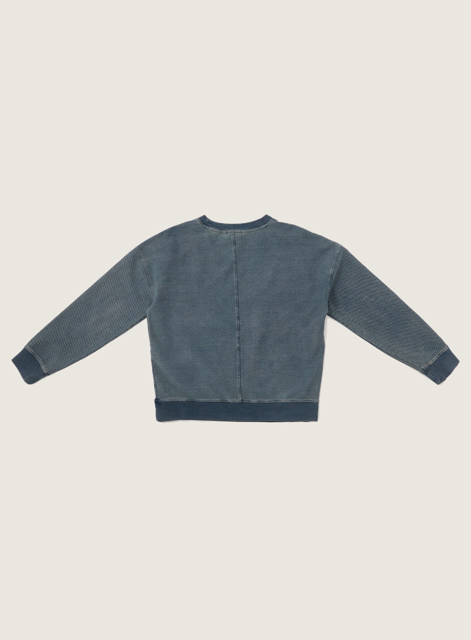 デニムのようなウォッシュ加工を施したプルオーバー。