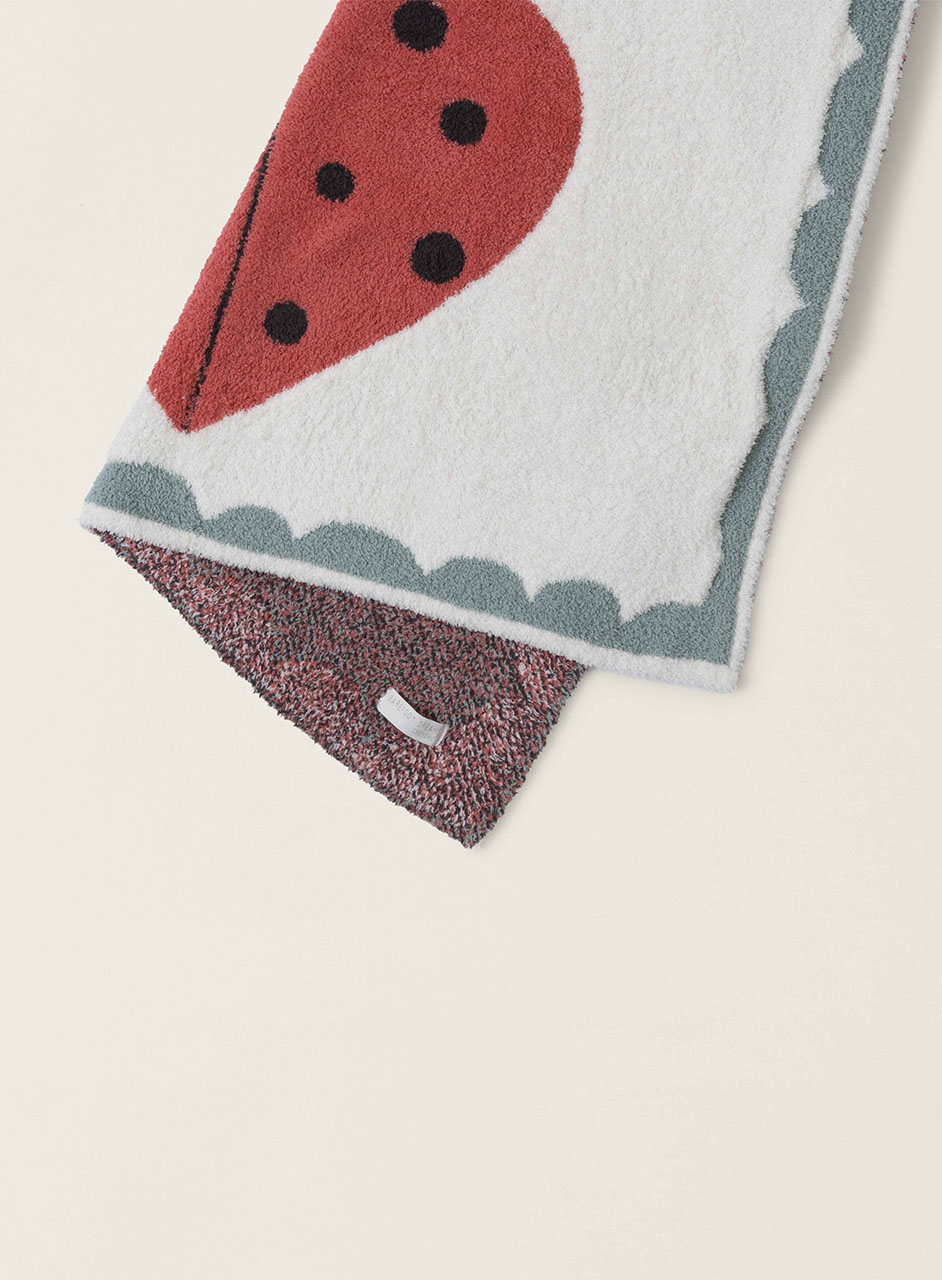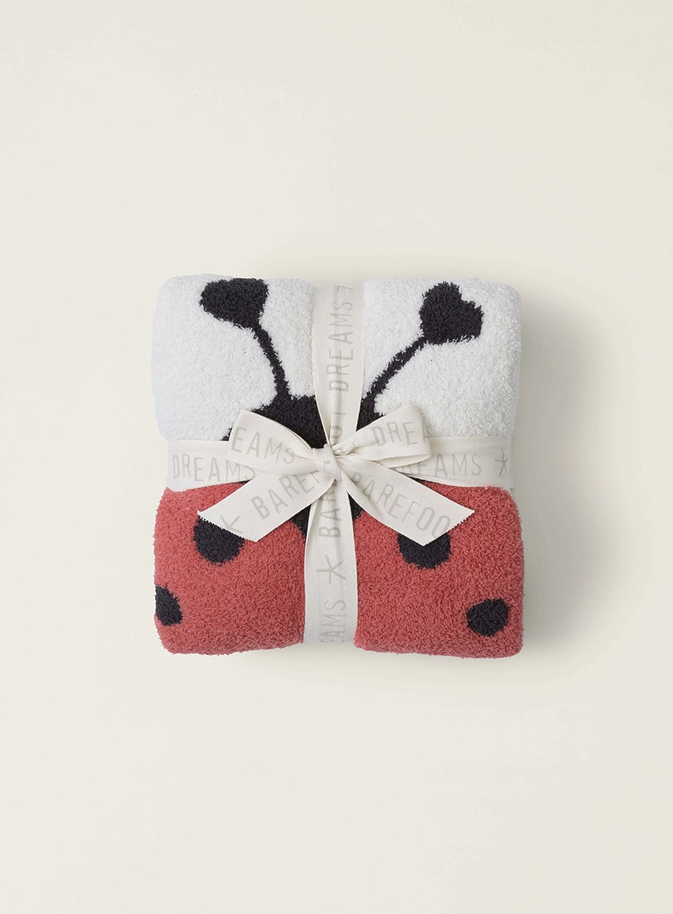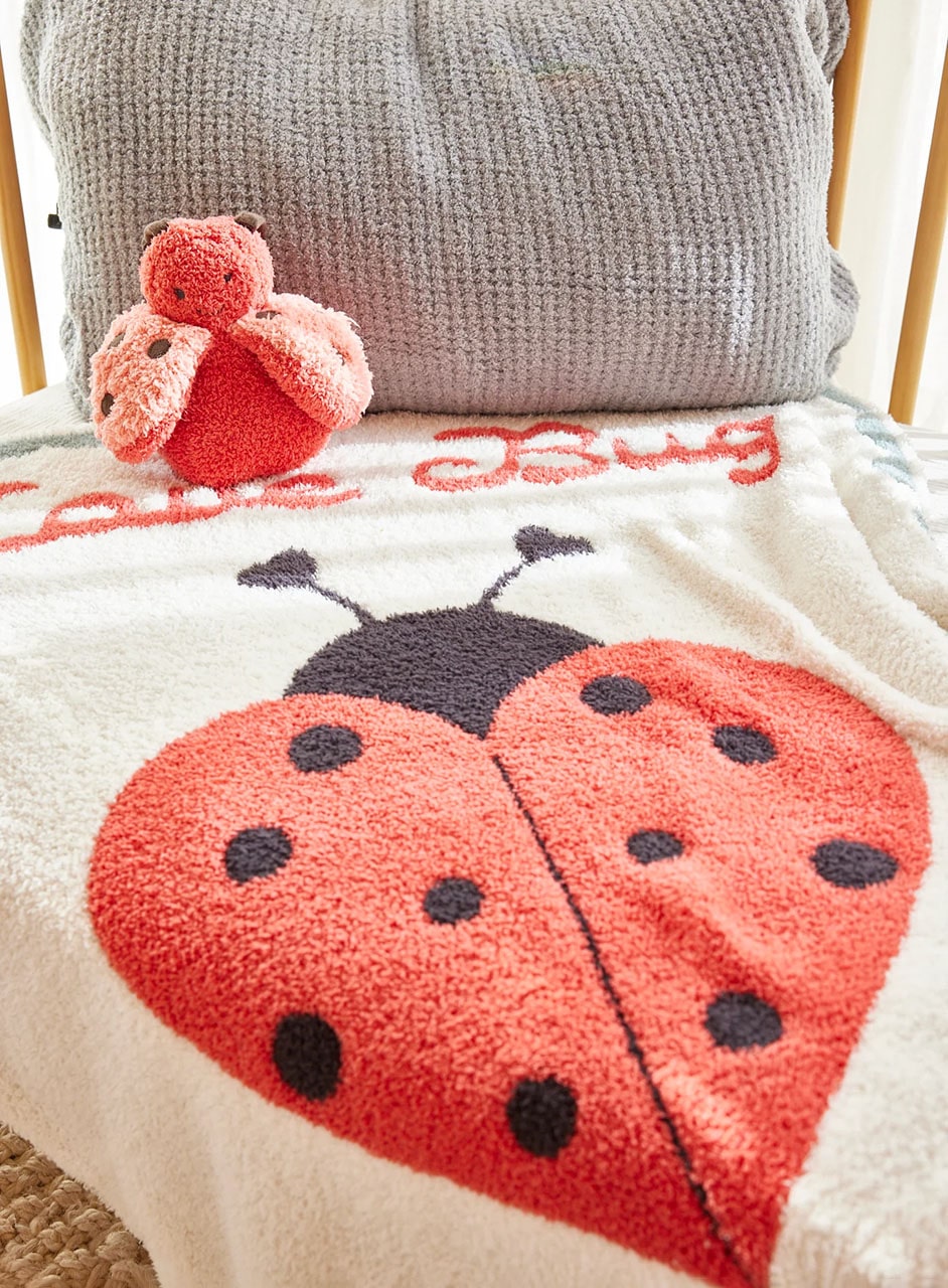 ハートシェイプのてんとう虫が描かれた可愛らしいブランケット。