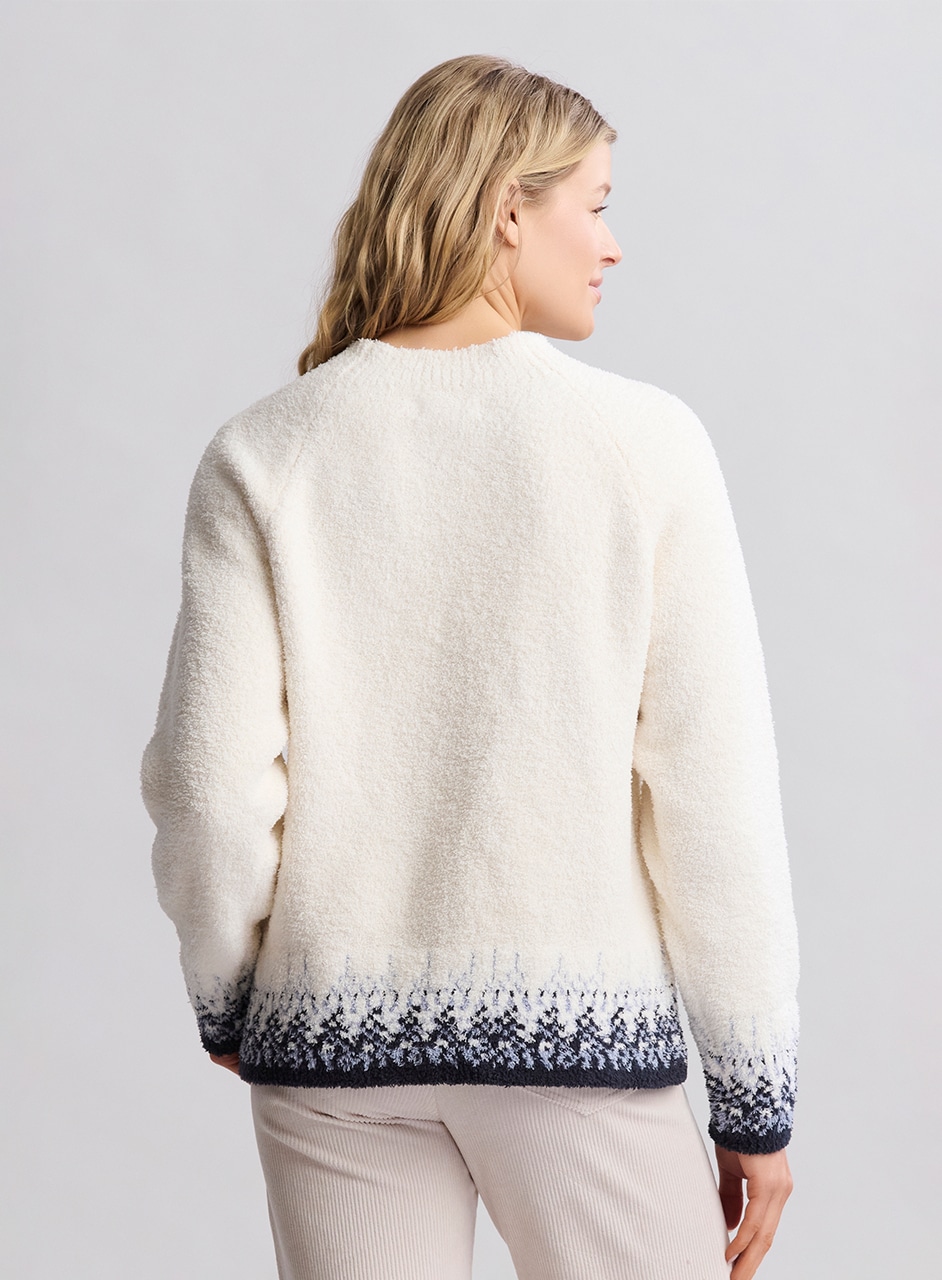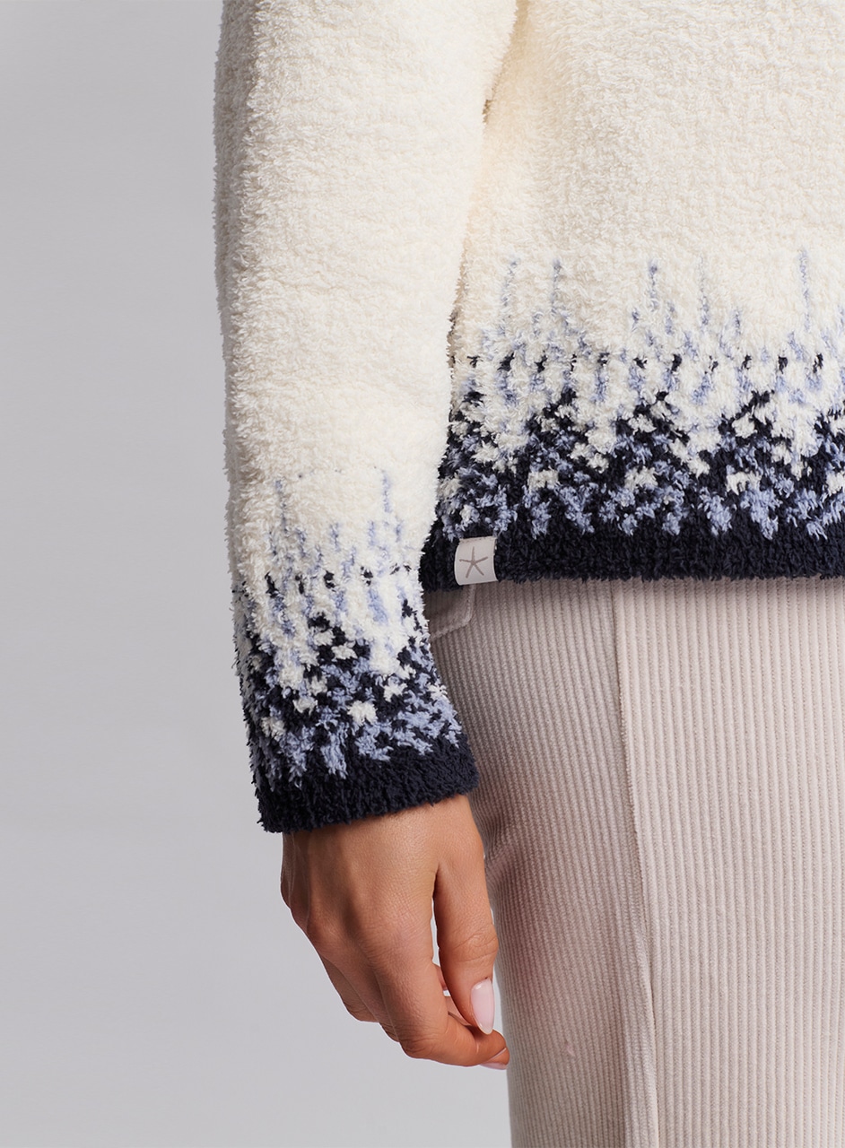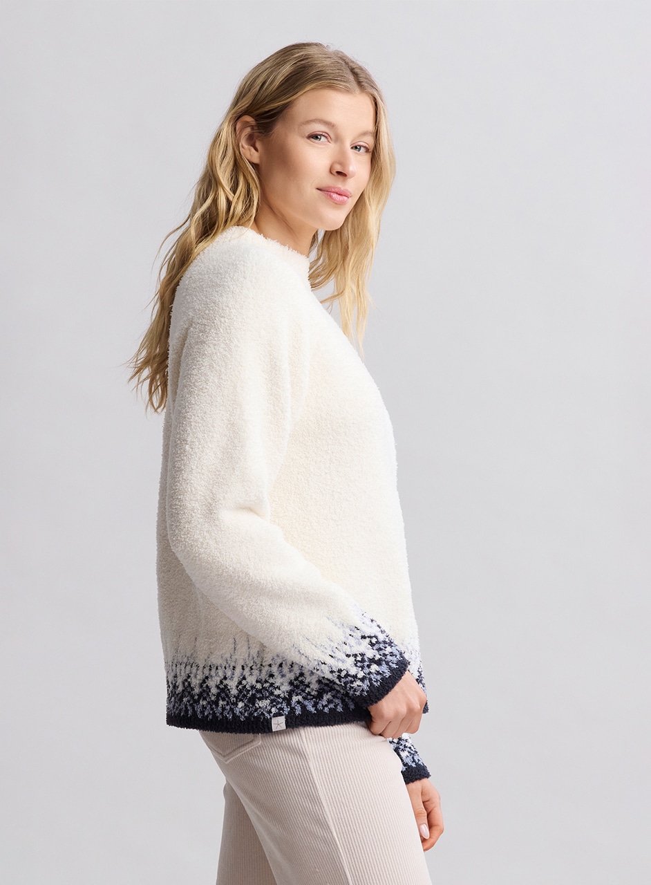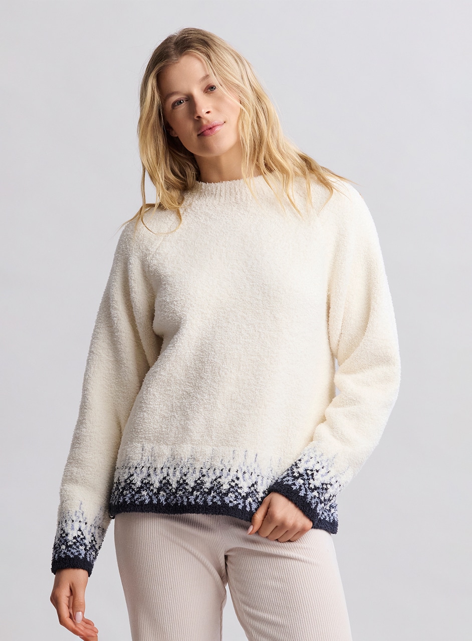 袖口と裾には、紙吹雪(コンフェッティ)を思わせるようなジャカード柄が施されており、小さな模様が散りばめられた楽しい雰囲気を演出。