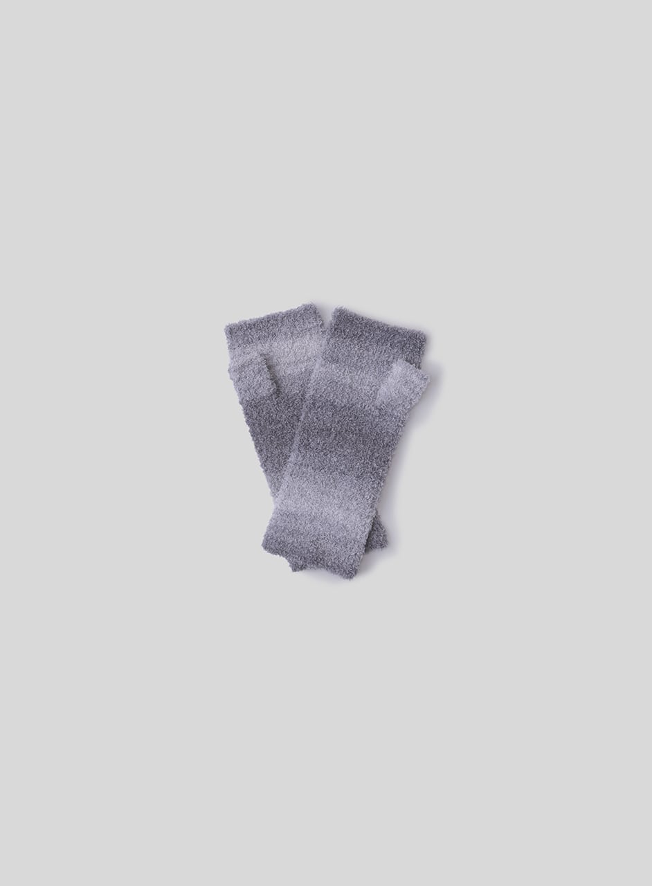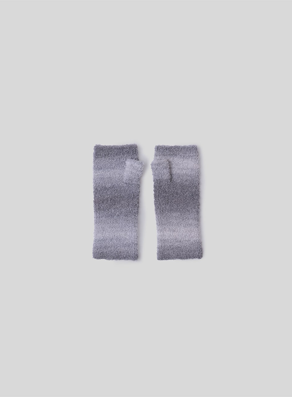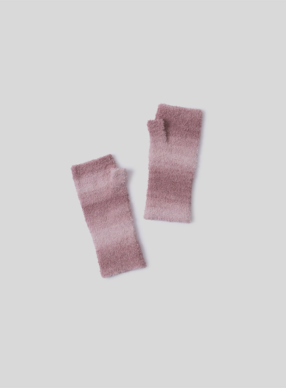ユニークなスペースダイ編みが目を引く、ふんわり柔らかな素材で仕立てたフィンガーレスグローブ。