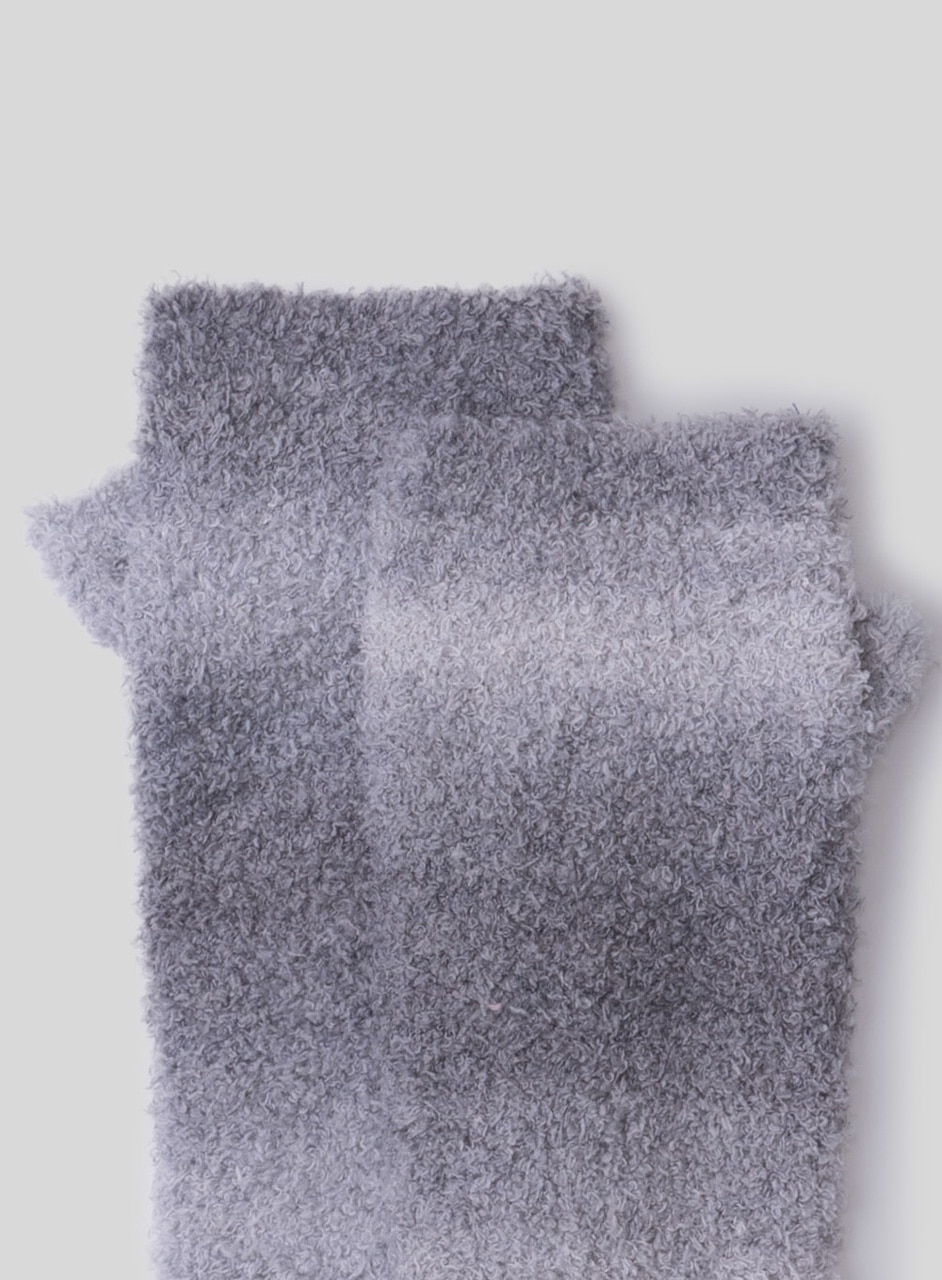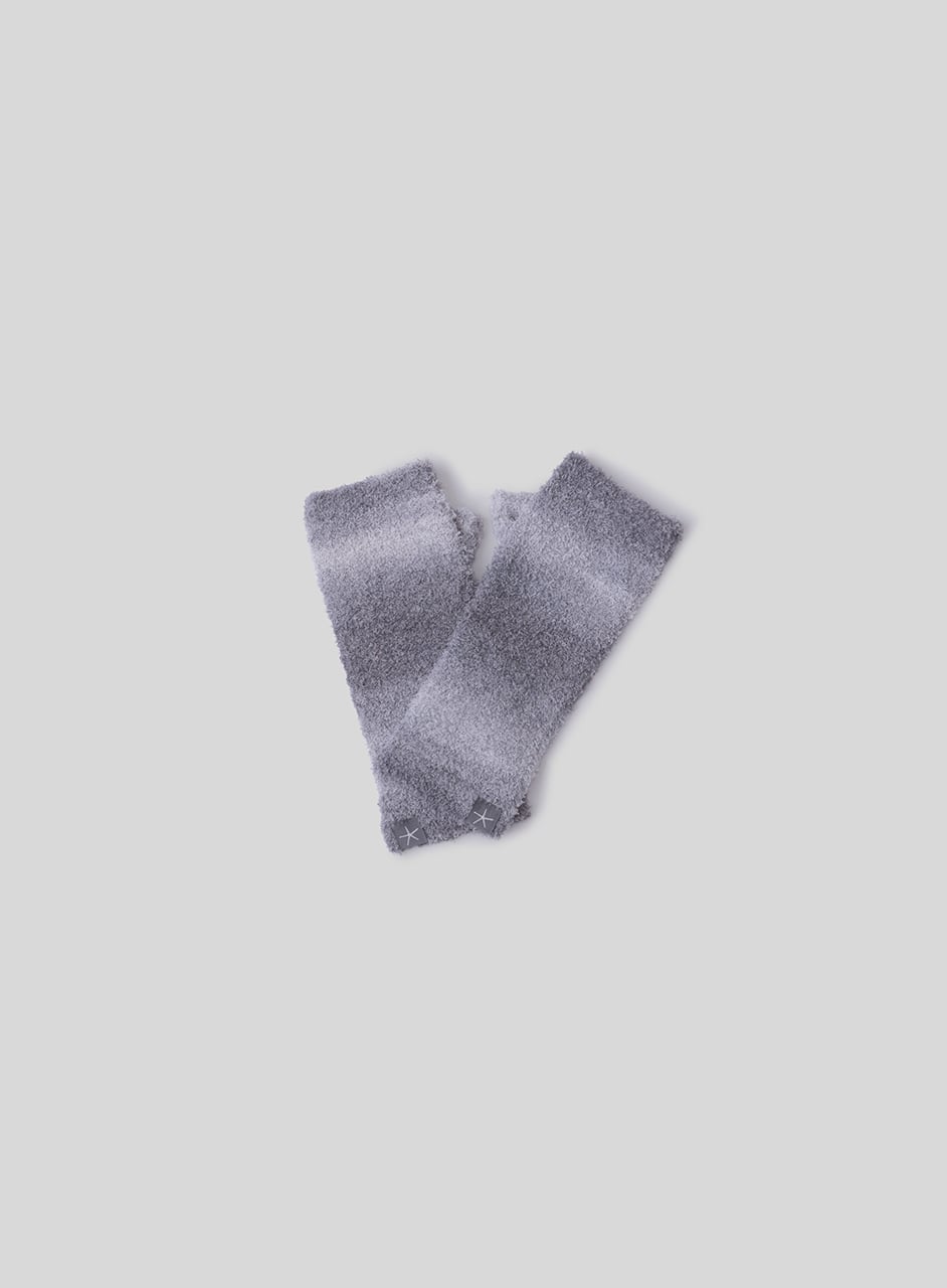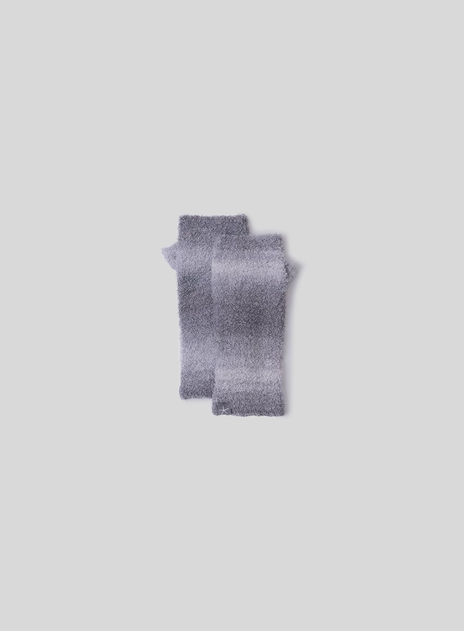 ユニークなスペースダイ編みが目を引く、ふんわり柔らかな素材で仕立てたフィンガーレスグローブ。