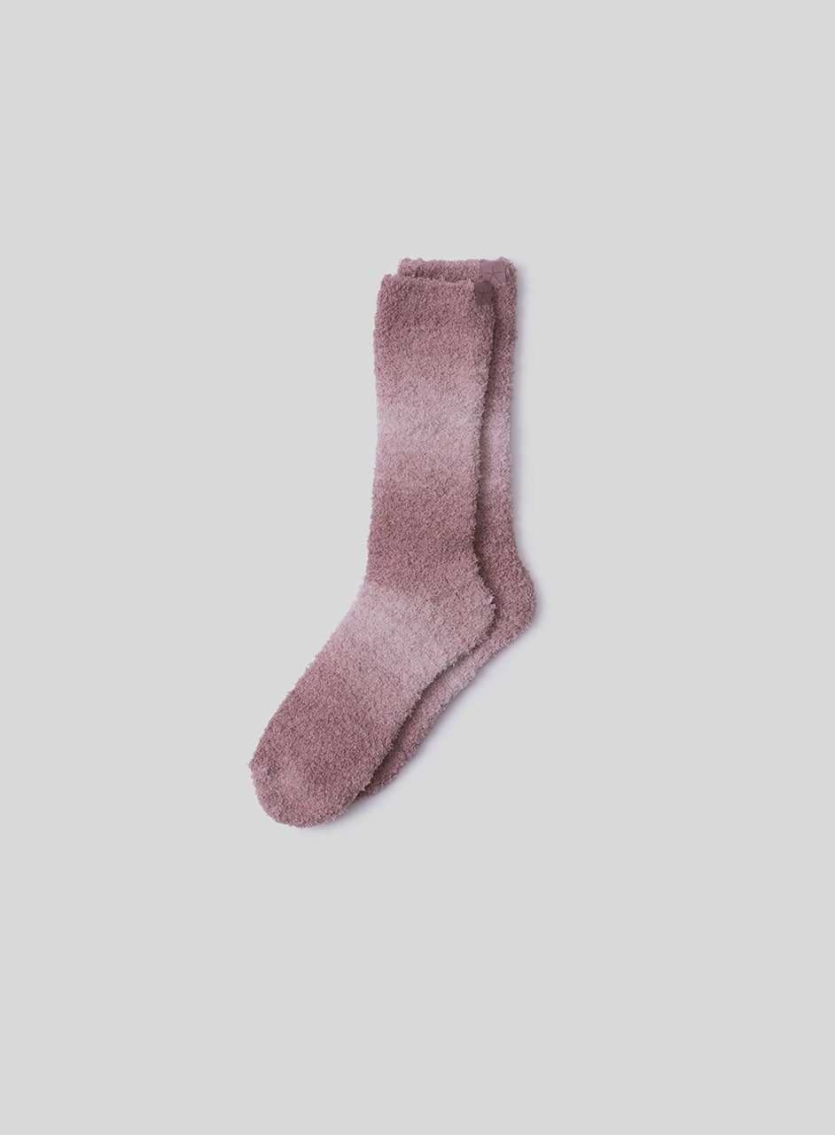 ユニークなスペースダイ編みが目を引く、ふんわり柔らかな素材で仕立てたソックス。