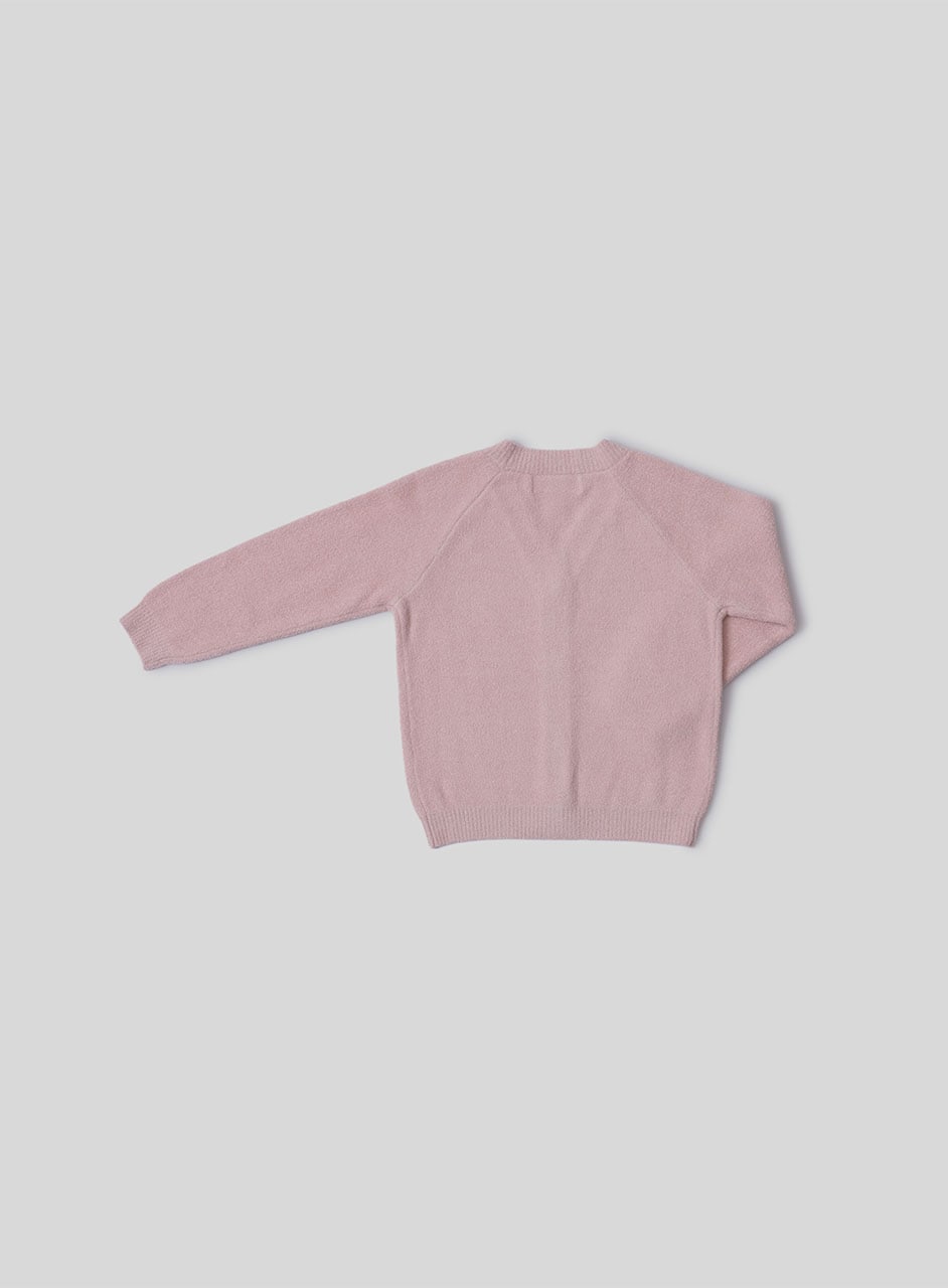 ラグランスリーブで動きやすく、袖口と前立てにはリブ編みを施し、ほどよくきちんと感のある仕上がりに。