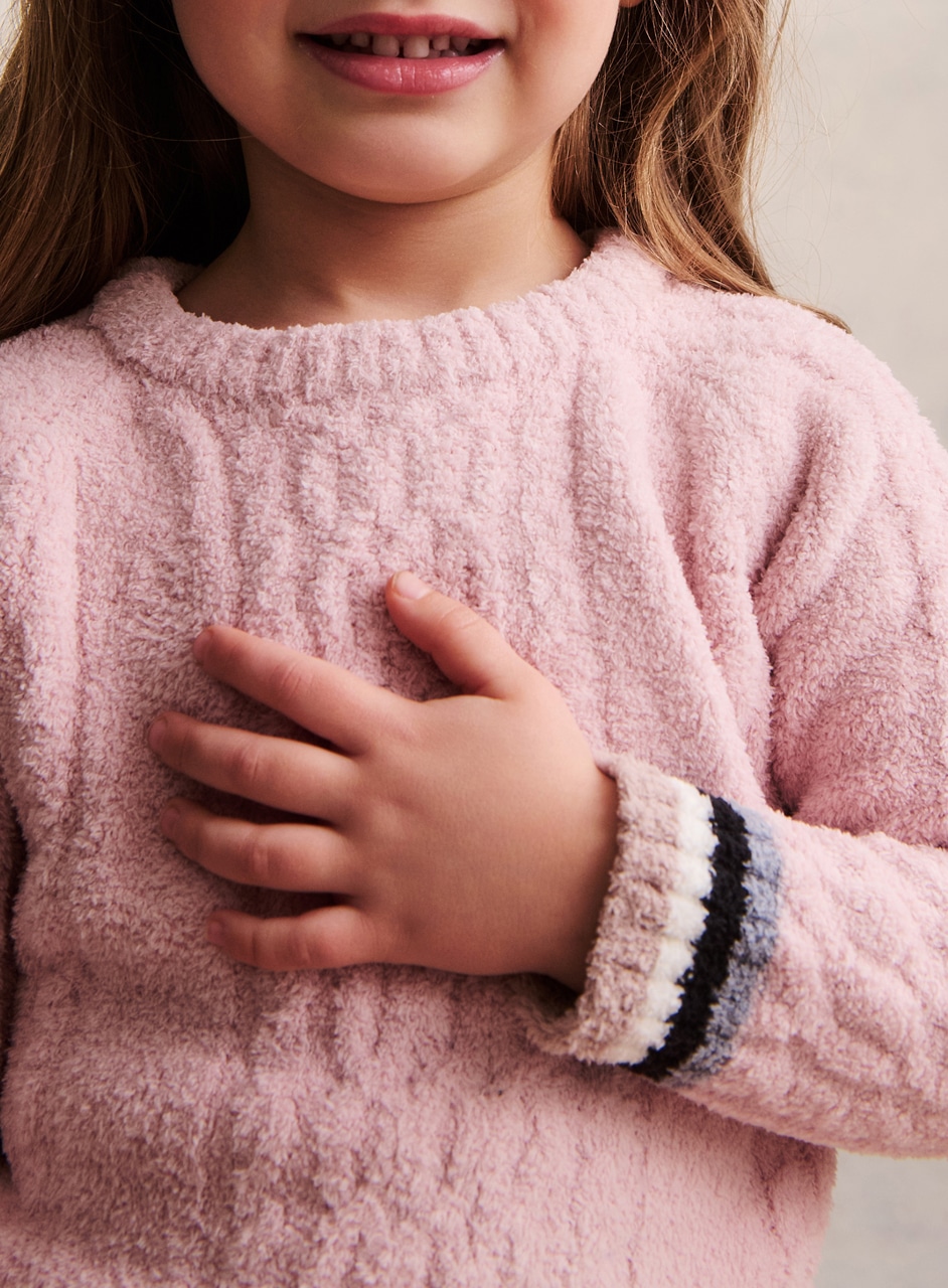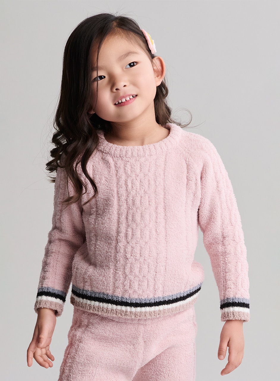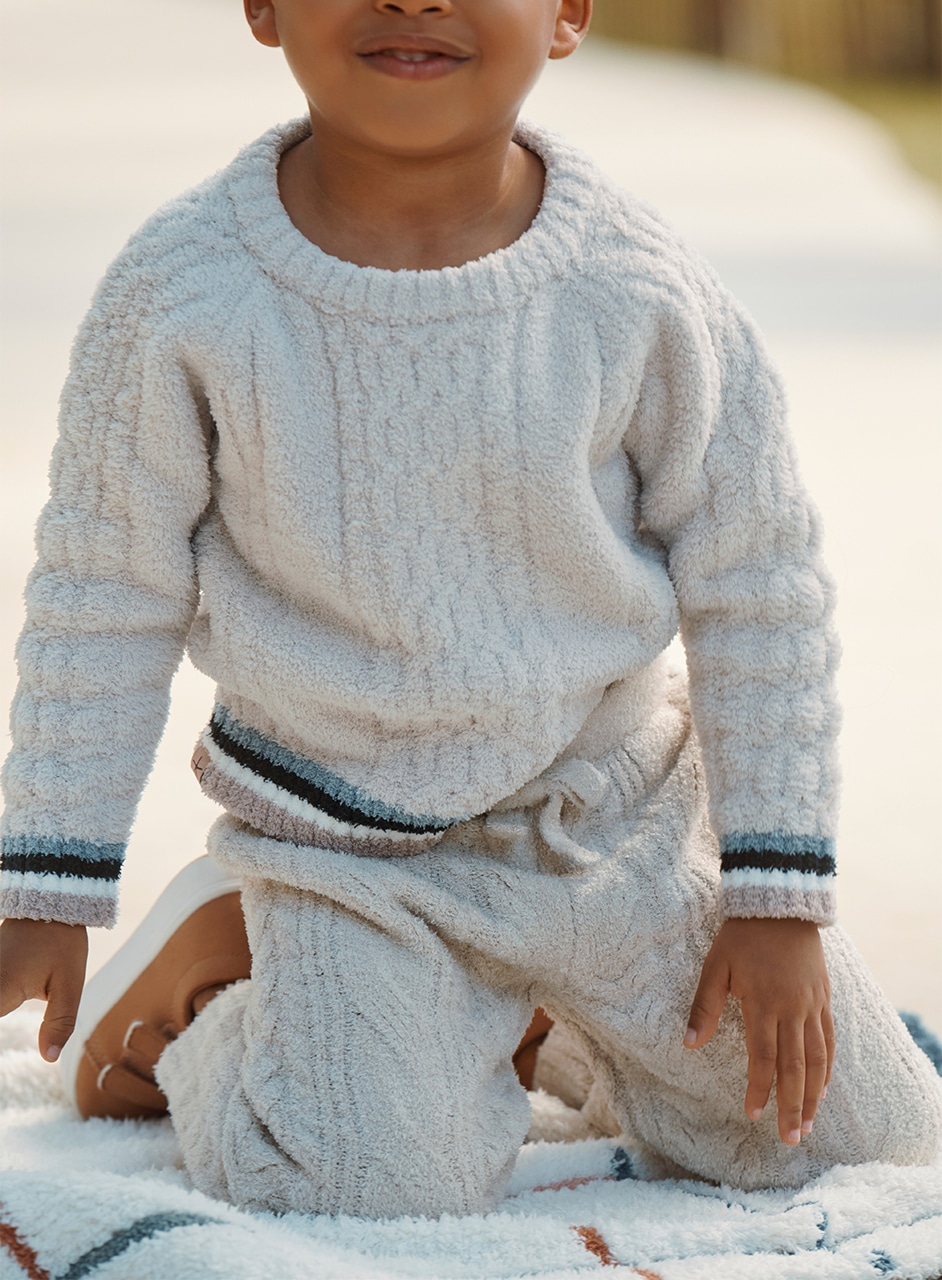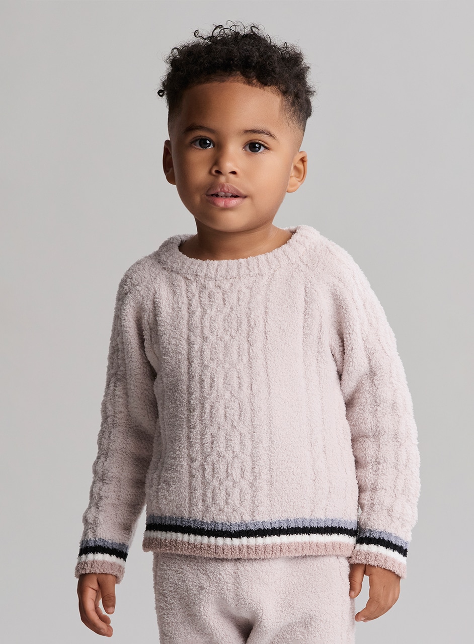 クラシックな編み模様とスポーティなディテールを組み合わせた、元気いっぱいのお子さまにぴったりのプルオーバー。