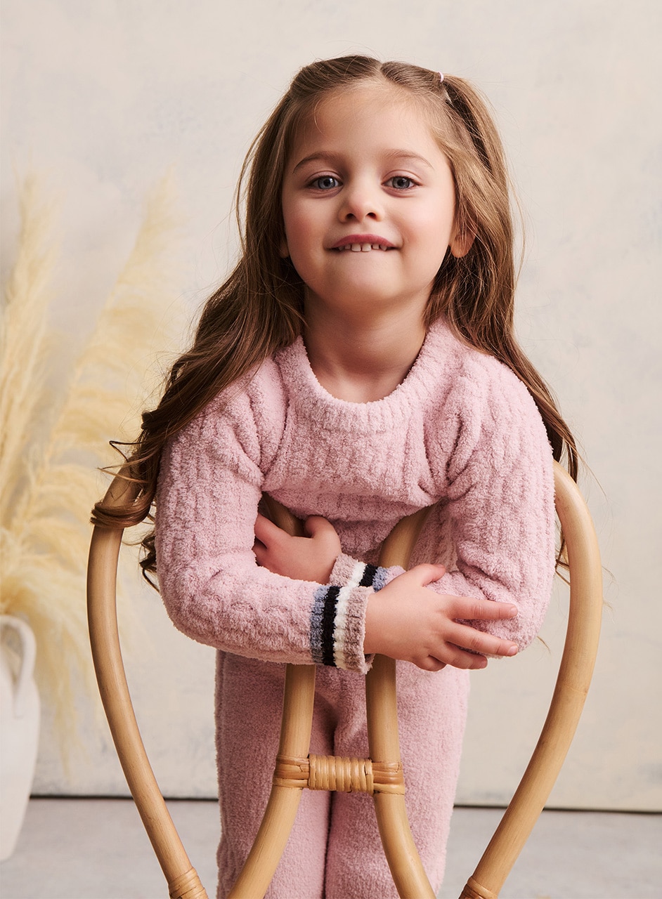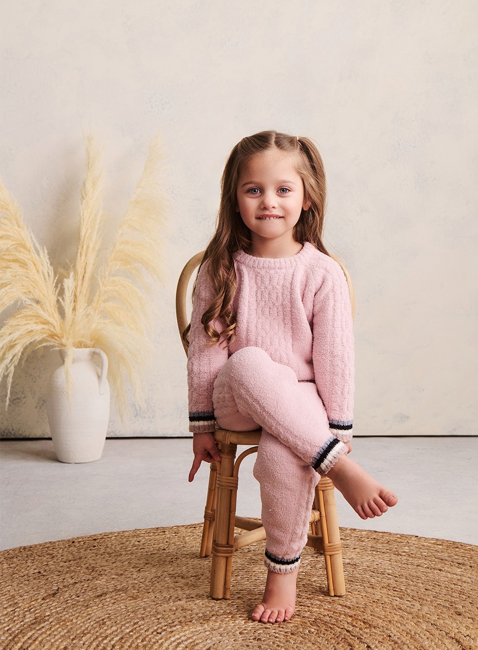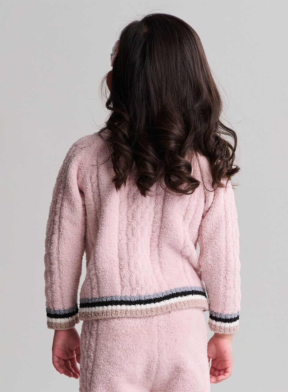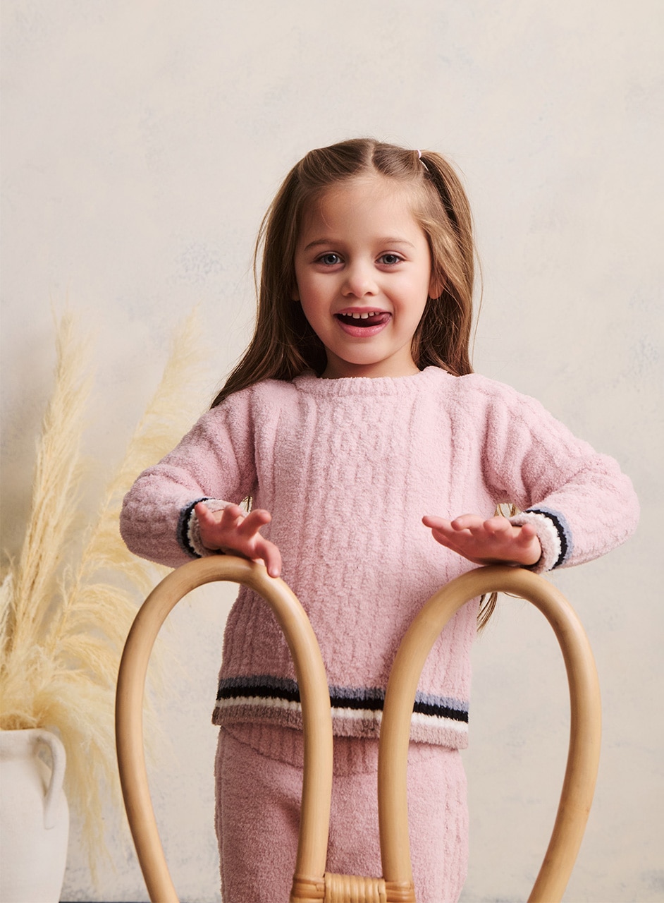 クラシックな編み模様とスポーティなディテールを組み合わせた、元気いっぱいのお子さまにぴったりのプルオーバー。