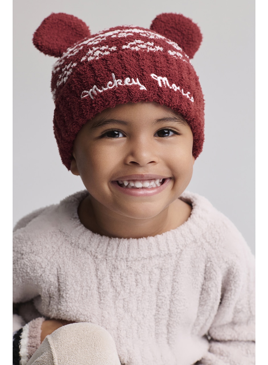 アイコニックなミッキーの耳と、折り返しリブカフが付いており、暖かさと快適さをしっかりキープします。