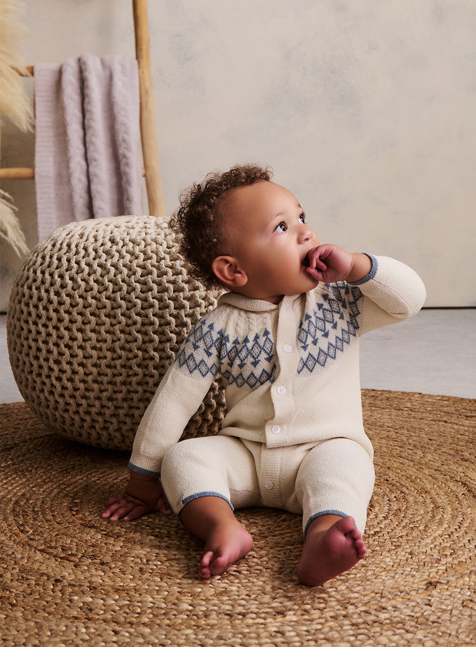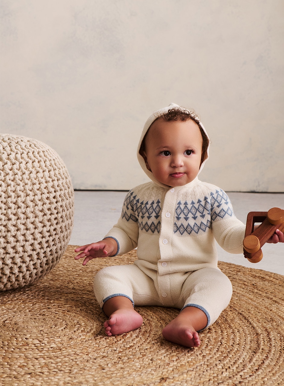 同シリーズの「<セット>ベビー フェアアイル ビーニー&ソックス コージーシックライト」と合わせて、統一感のあるコーディネートも楽しめます。