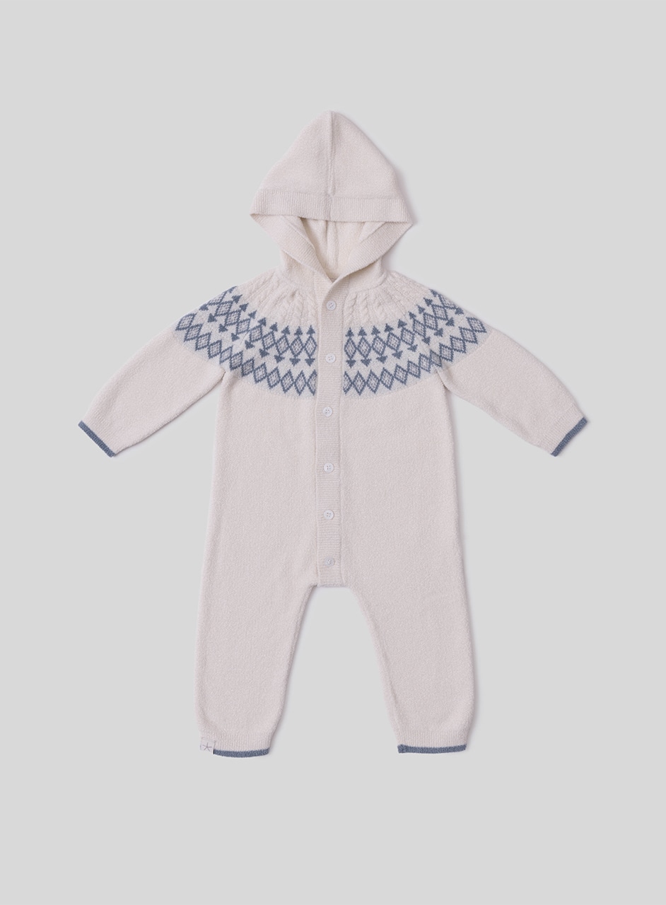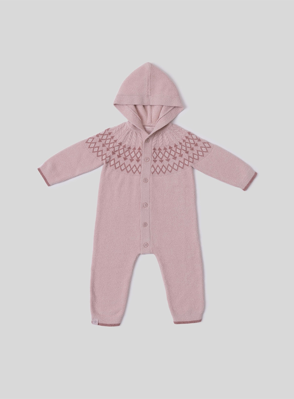 ふんわり軽やかなコージーシックウルトラライト素材を使用し、フード付きのオールインワンデザインで赤ちゃんをあたたかく包み込みます。