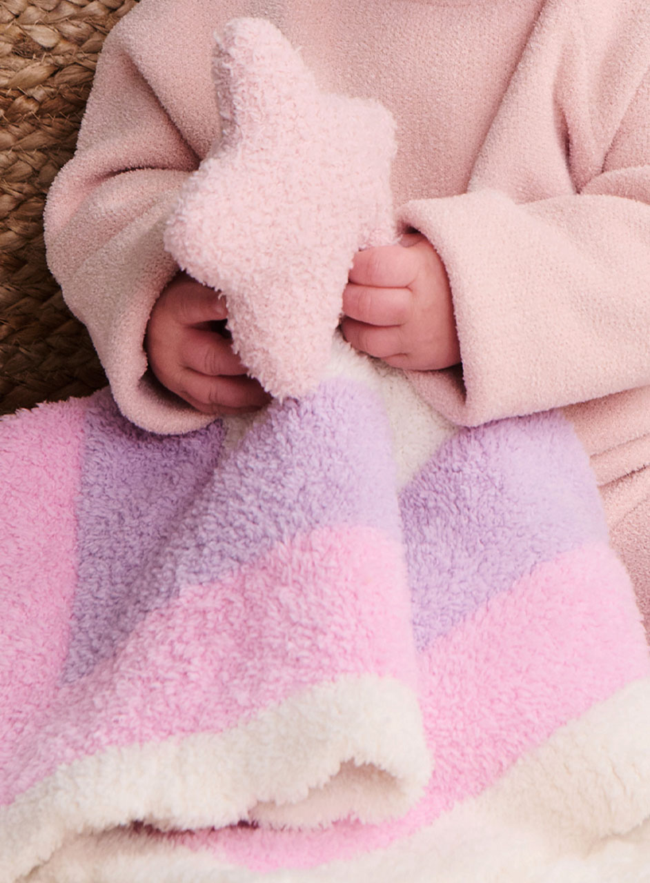 ふんわり柔らかなコージーシック素材で仕立てたベビーブランケット。