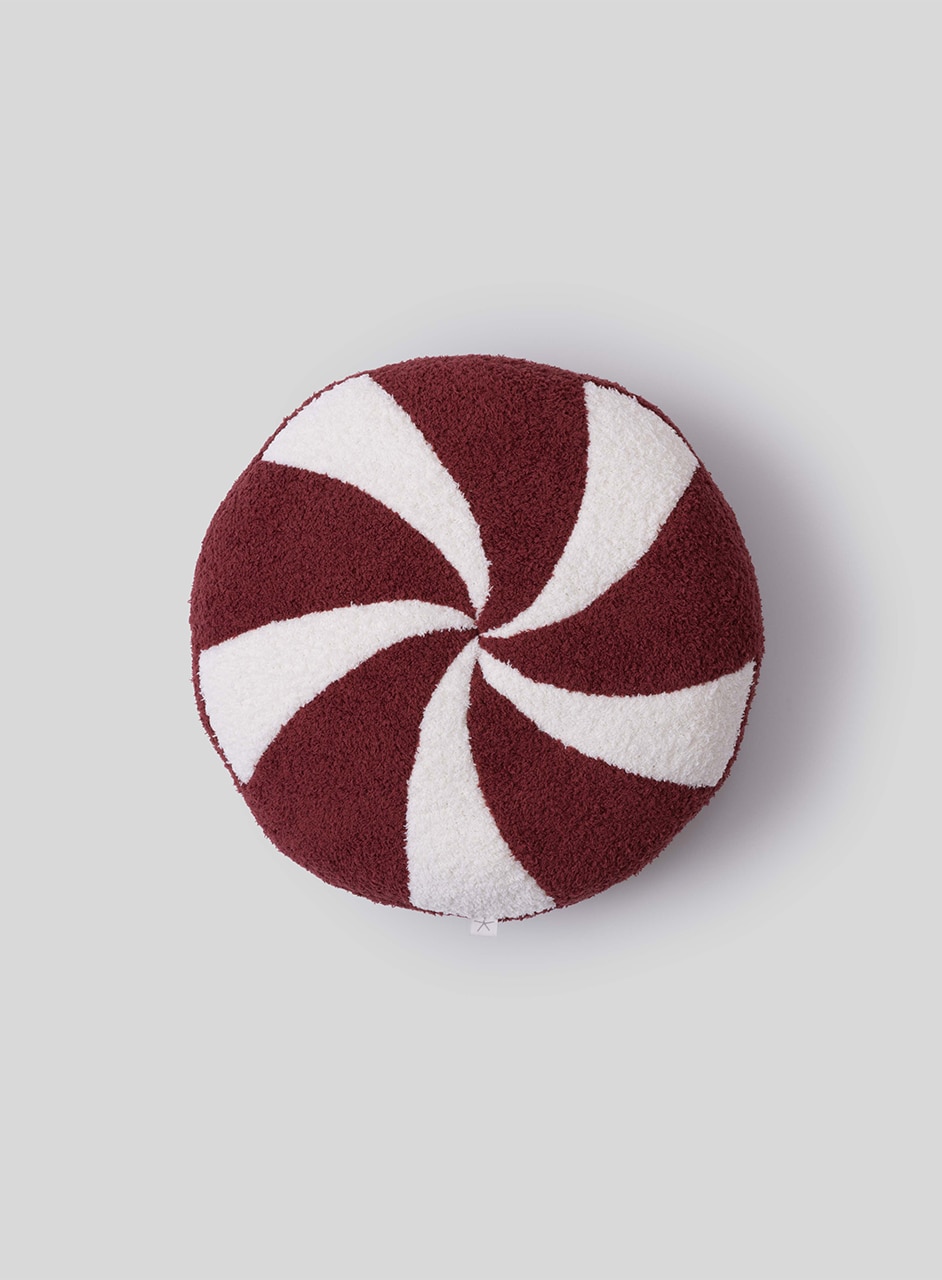 ホリデーシーズンにぴったりの甘さを空間に添える、ペパーミントモチーフのデコレーションピロー。