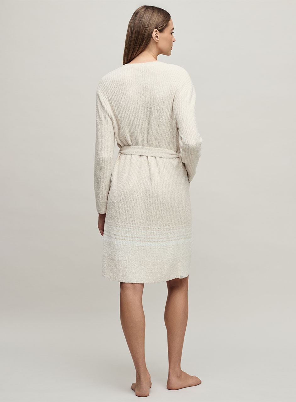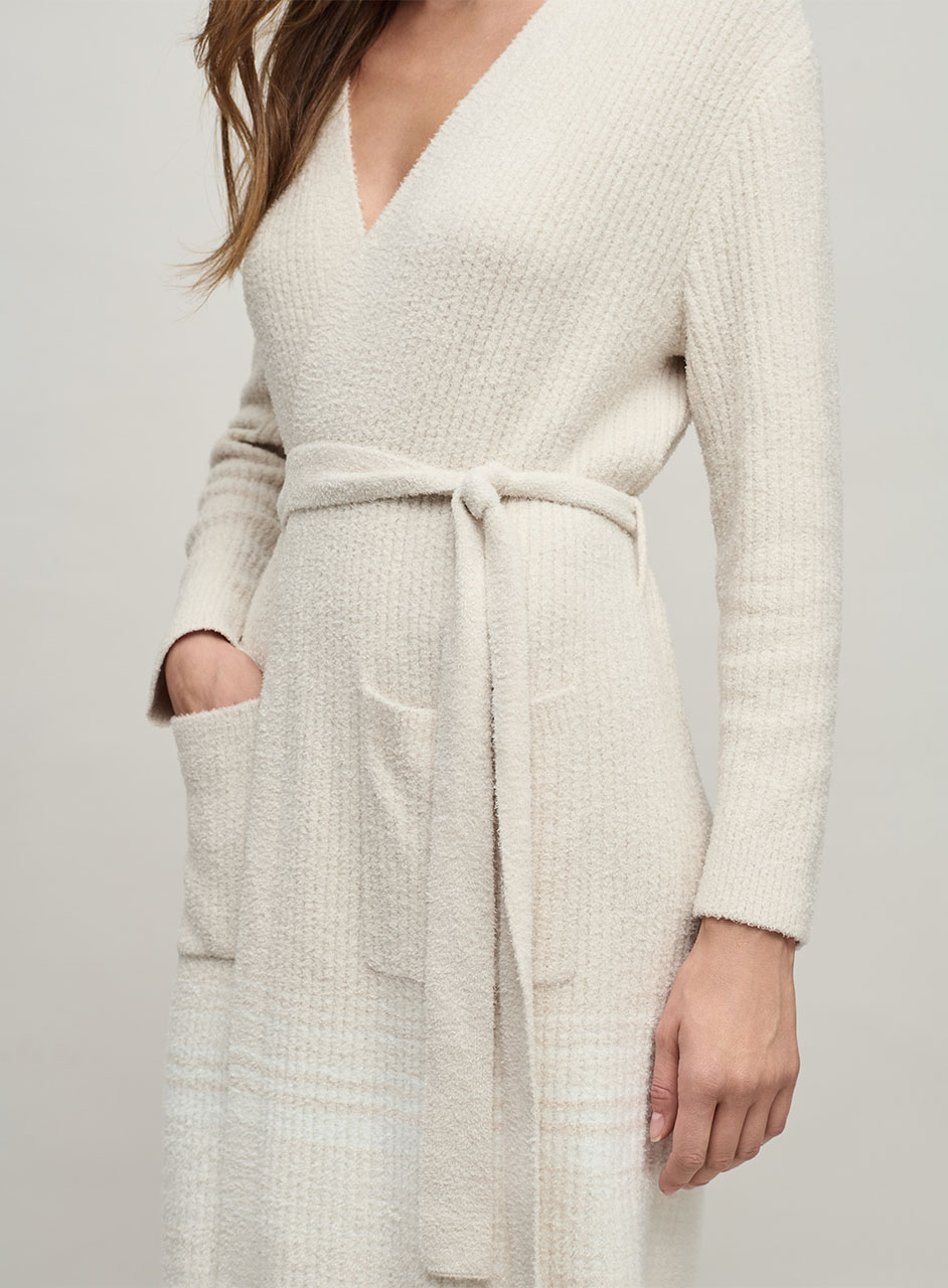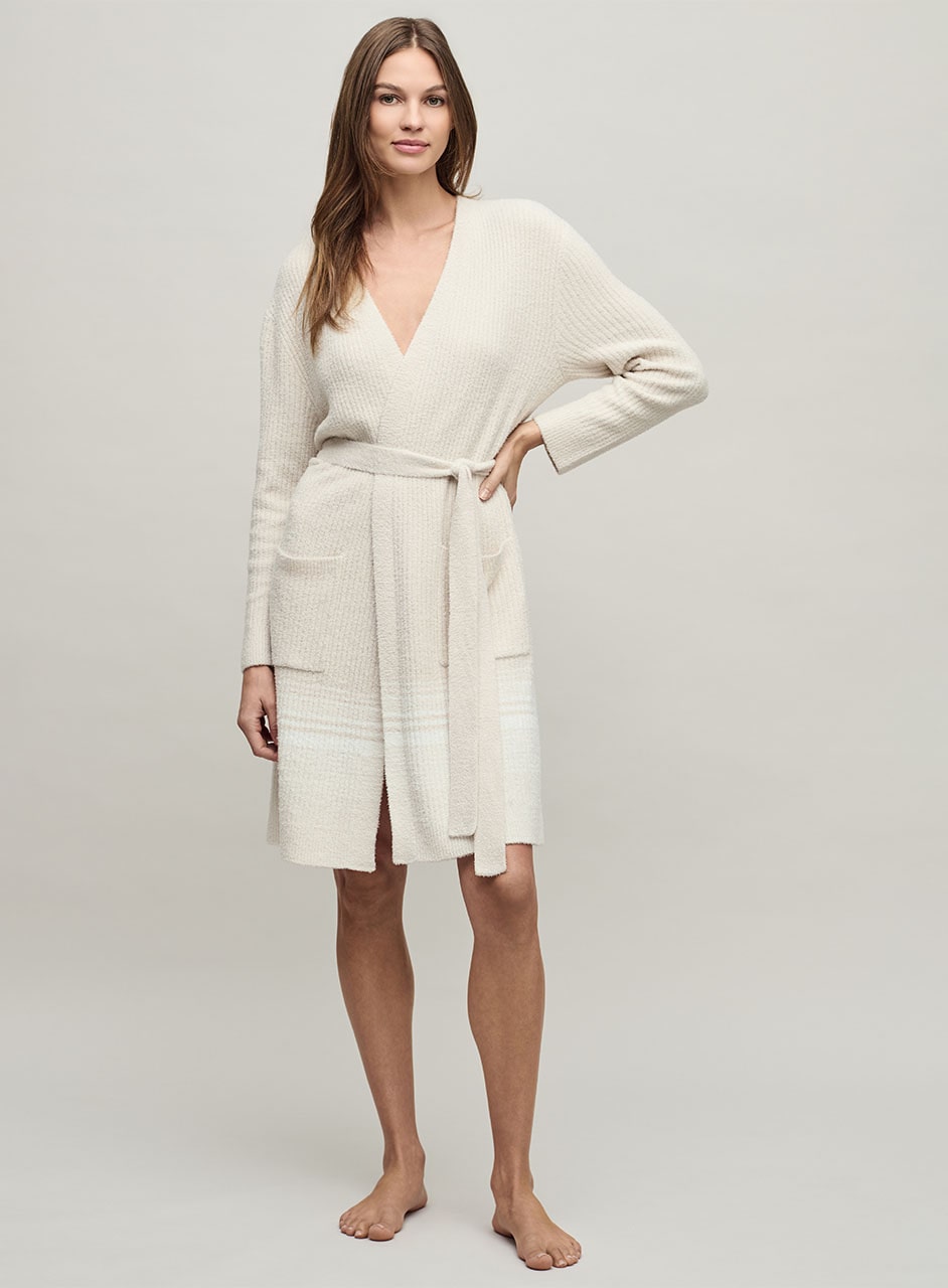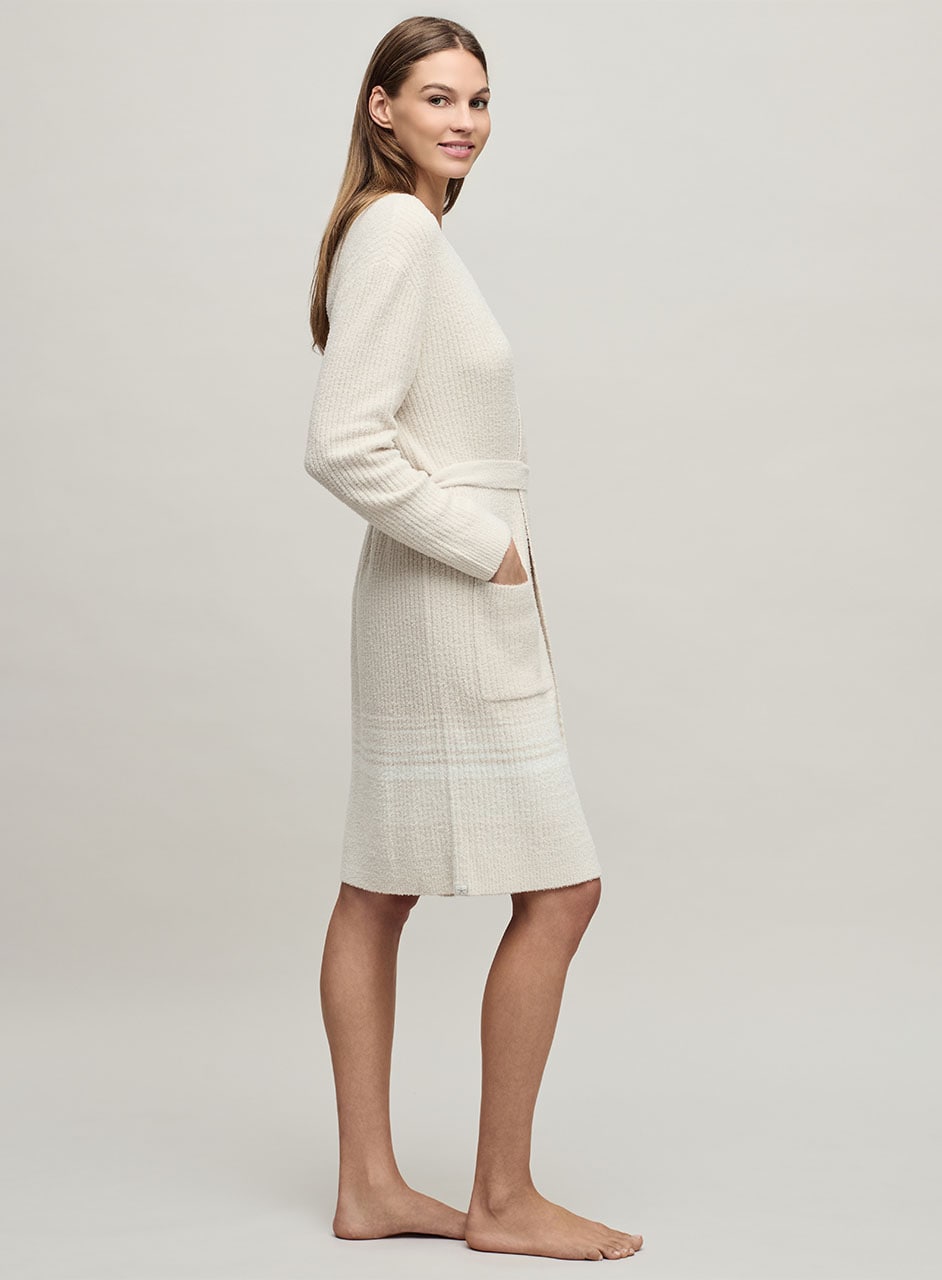 軽やかさと上質な心地よさを兼ね備えたコージーシックライト素材を使用した、バリエゲイテッド ストライプ リブ ローブ。