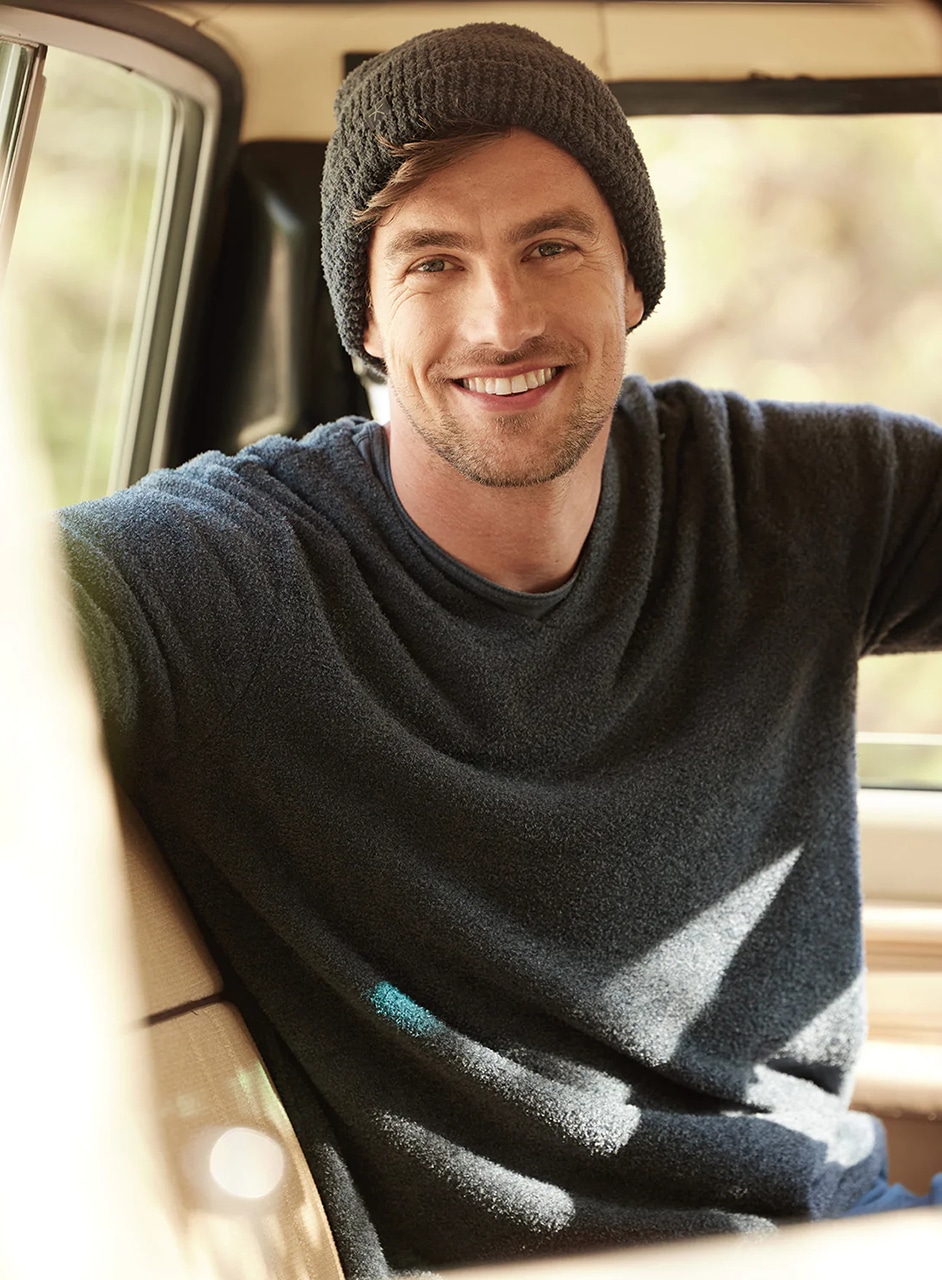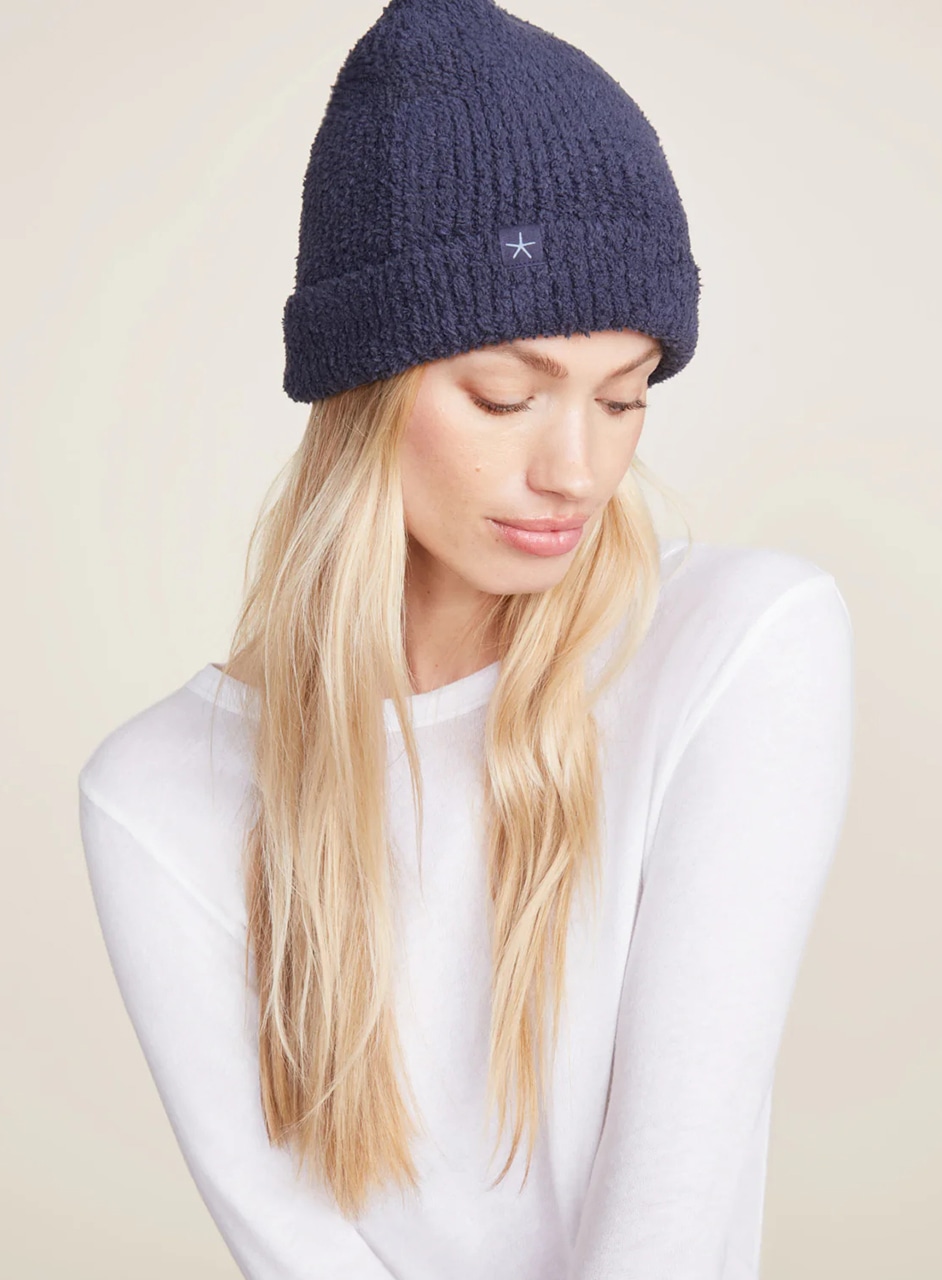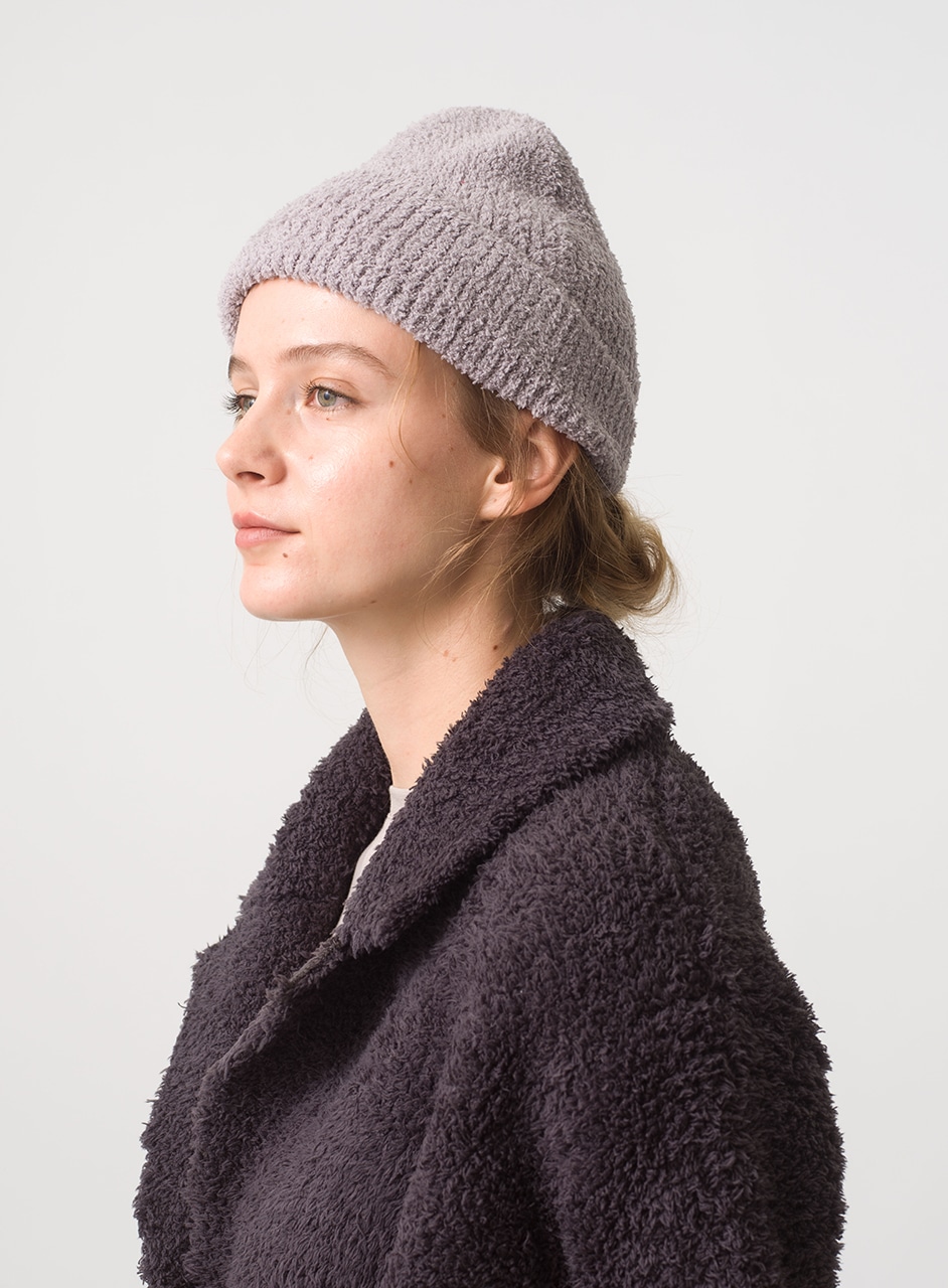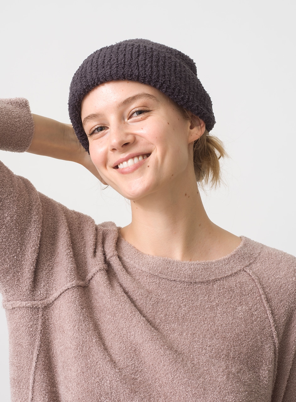 暖かく柔らかなコージーシック素材を使用したリブビーニー。