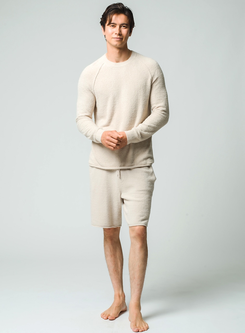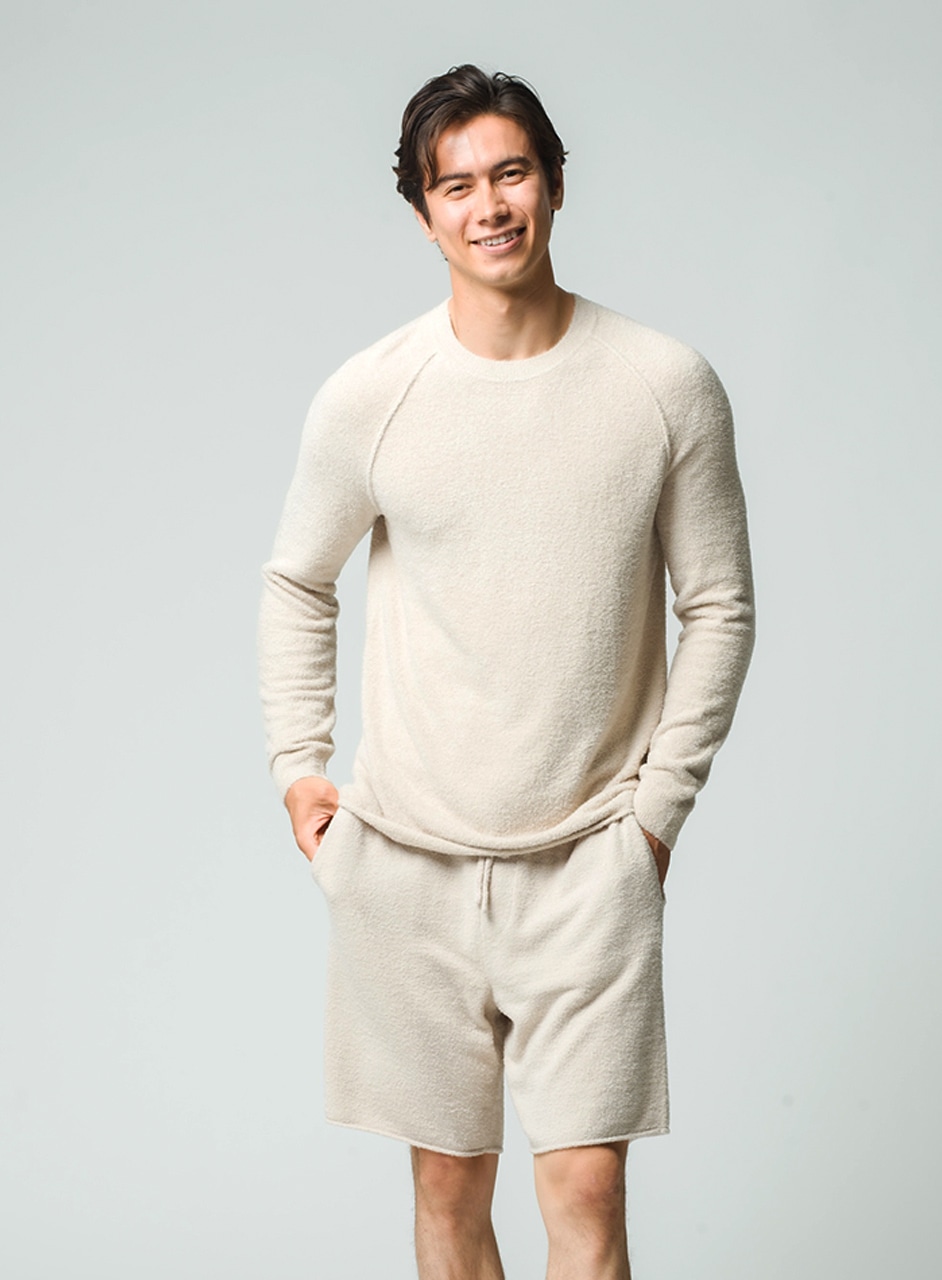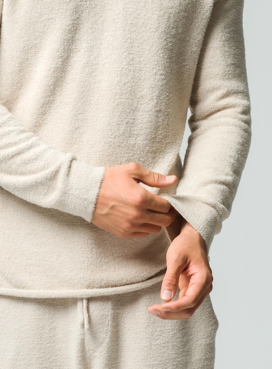 夏は涼しく冬はあたたかく、オールシーズンご使用いただけるコージーシックライト素材を使用したクルーネックプルオーバー。