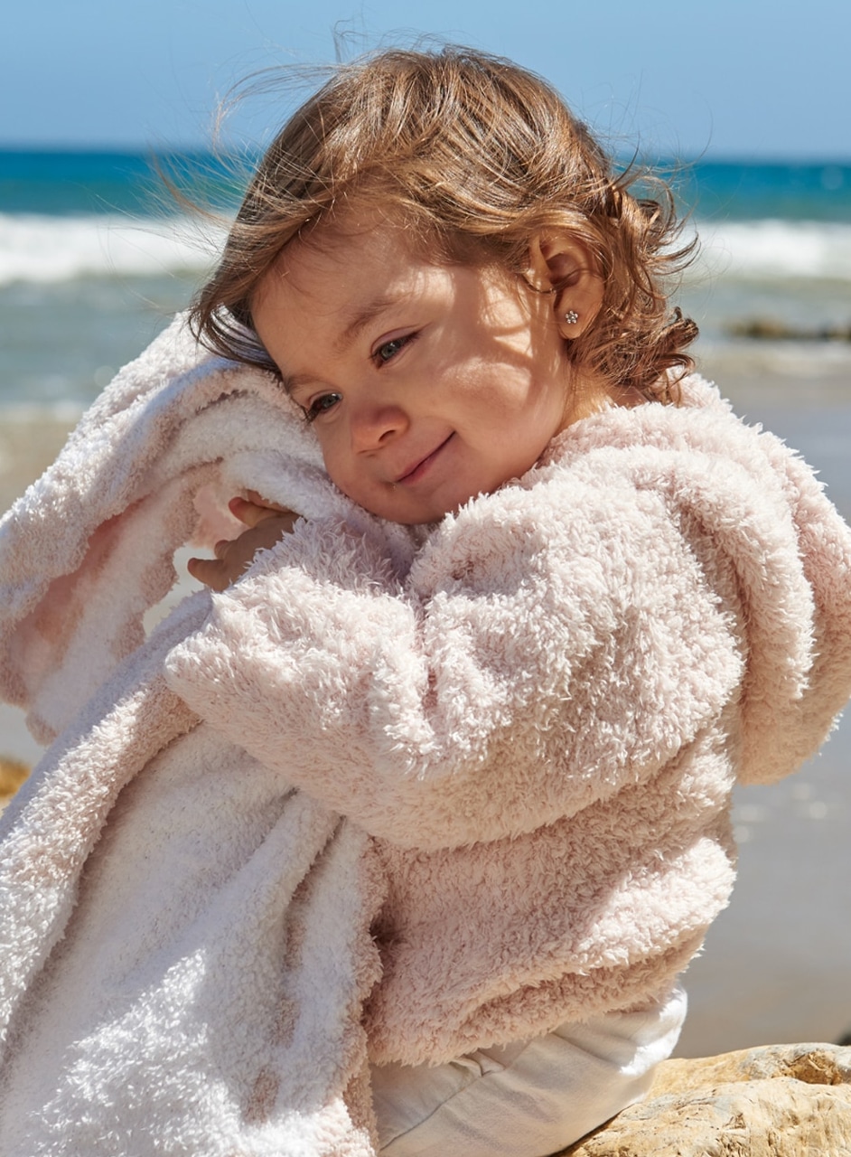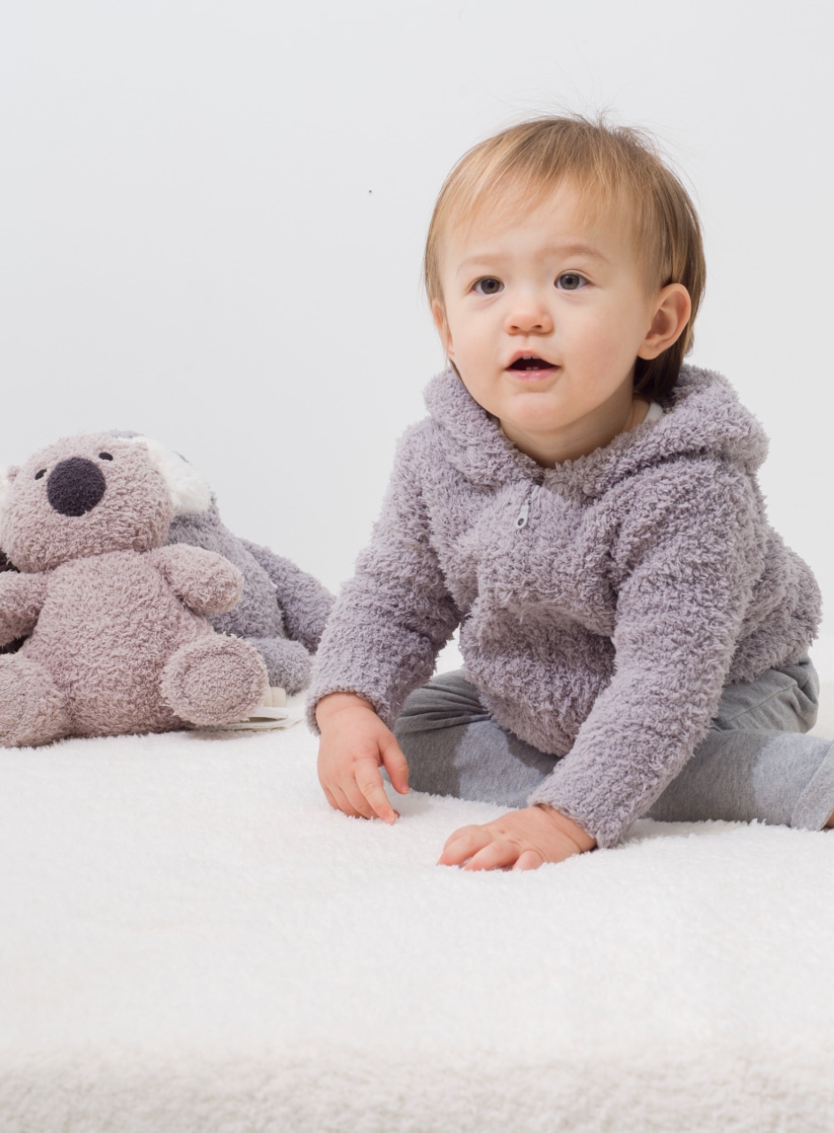 お子様の可愛らしさを引き立たせるふわふわのフーディー。