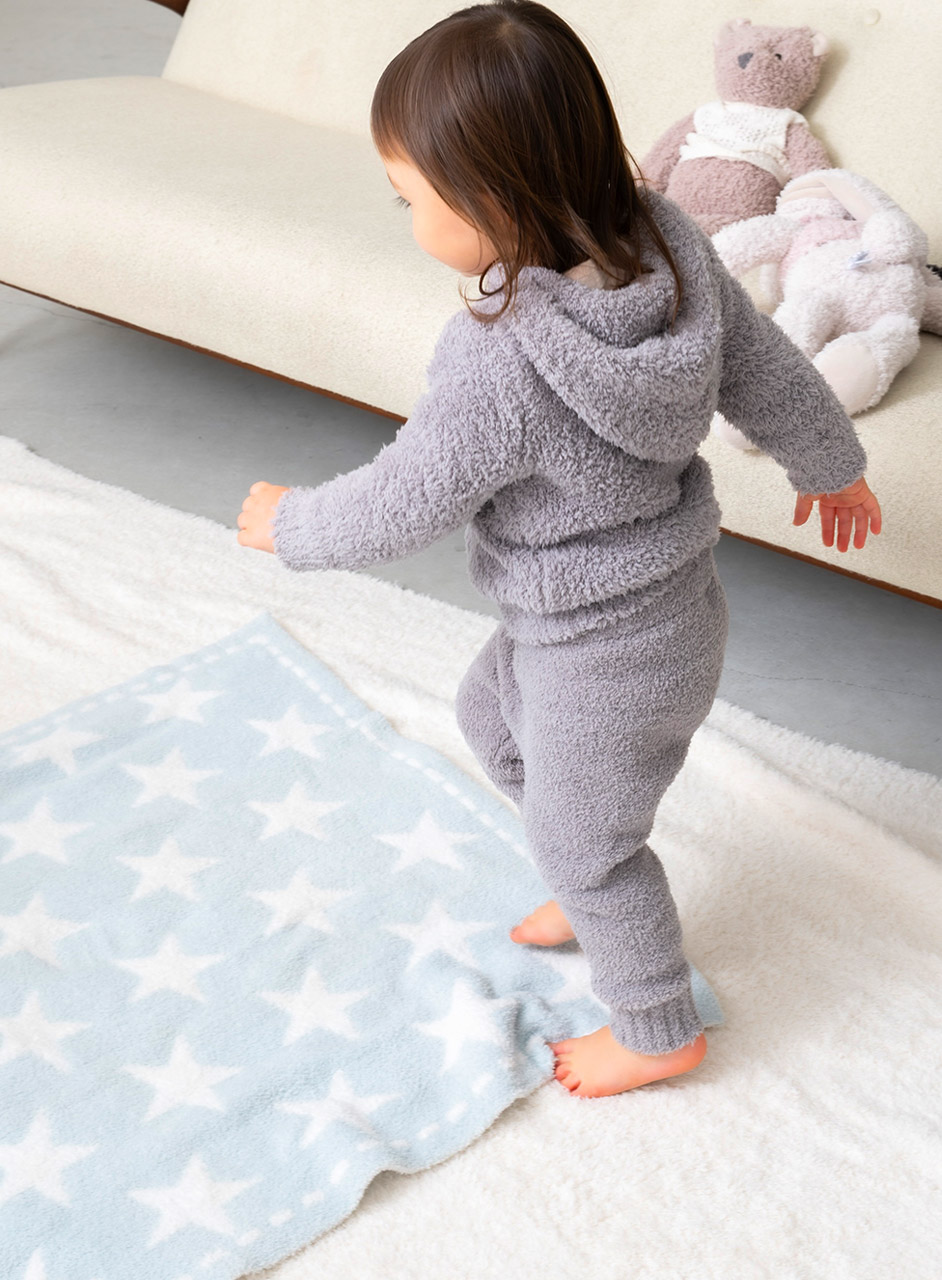 ウエストのゴムと裾のリブ仕上げで、好奇心旺盛なベビーの動きにも対応します。