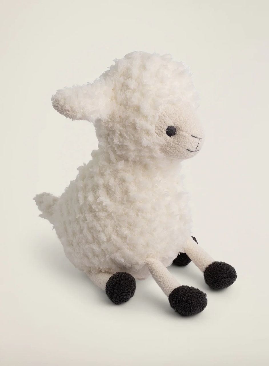 CozyChic素材を使用したこのかわいい子羊のぬいぐるみ。優しい肌触りでお子さまにも安心して使用して頂けます。