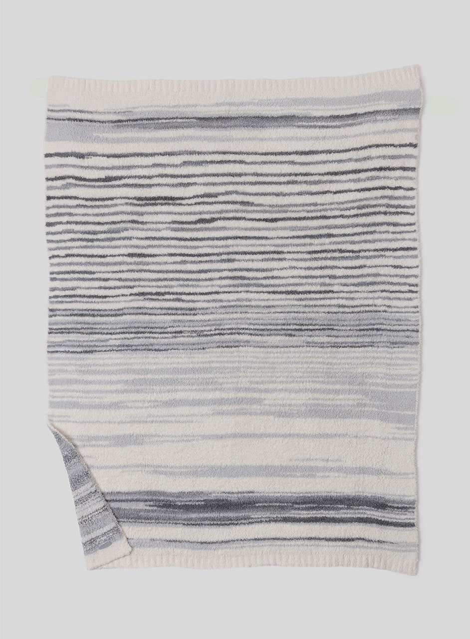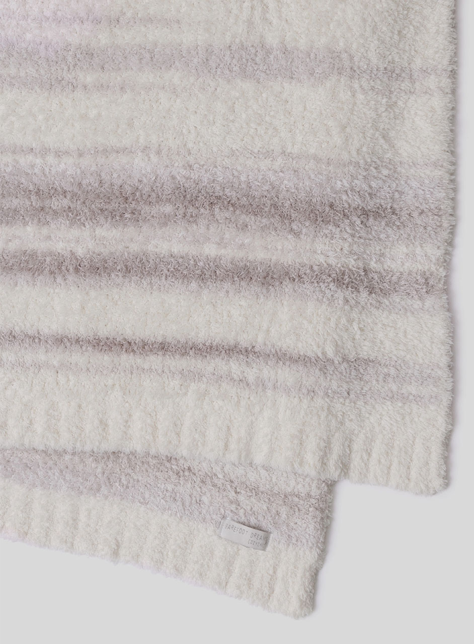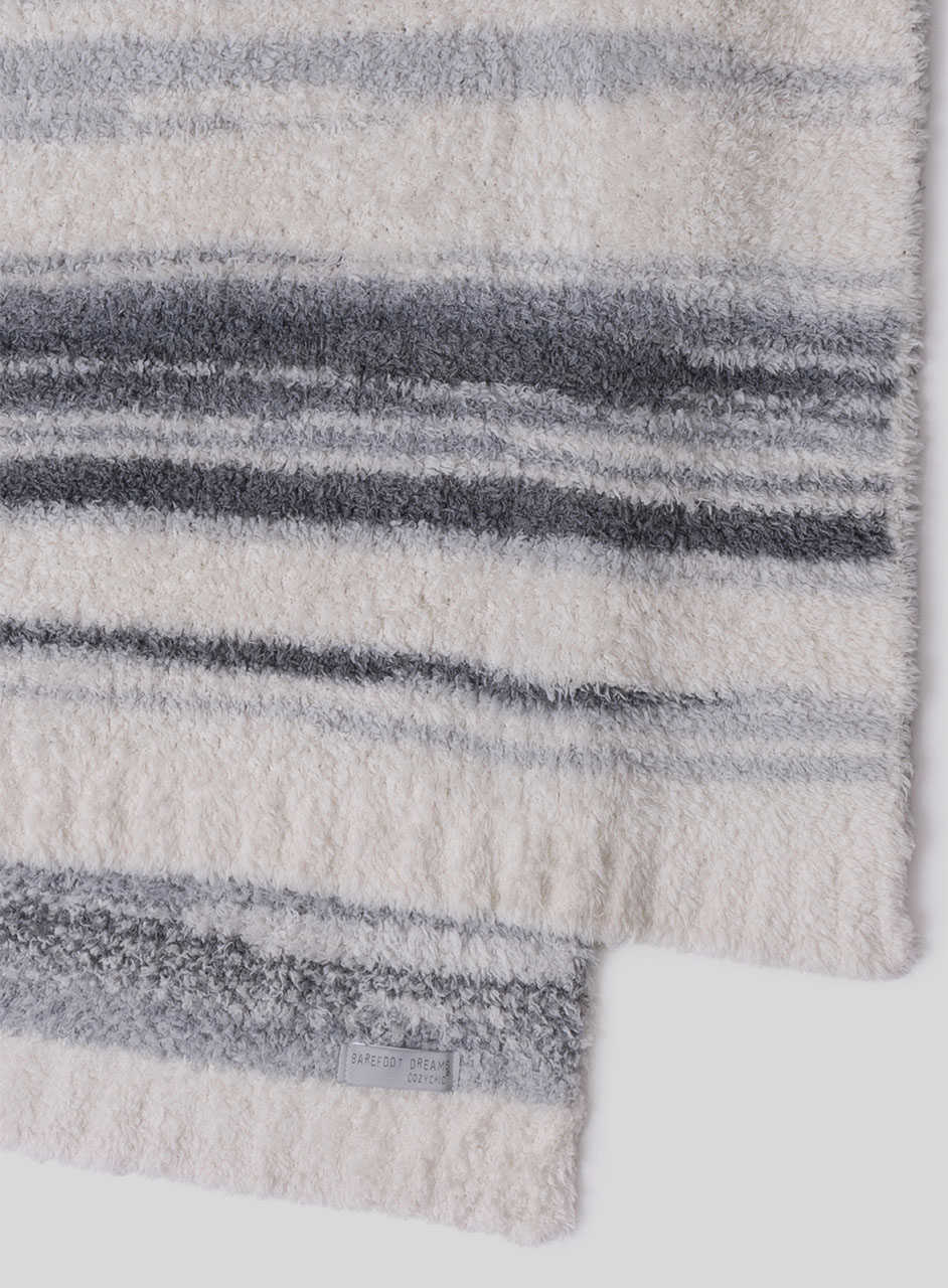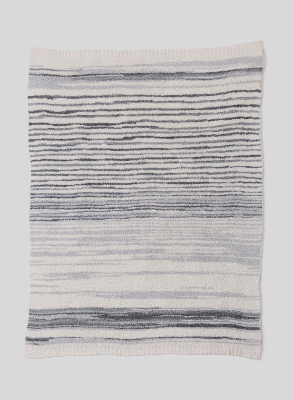 独自の縞模様で編まれたこのスローは、“スペースダイ”という特殊な染色技法を用いて、一本の糸に複数の色を混ぜ込むことで、マーブル調の美しい色合いと奥行きのあるトーンを生み出しています。