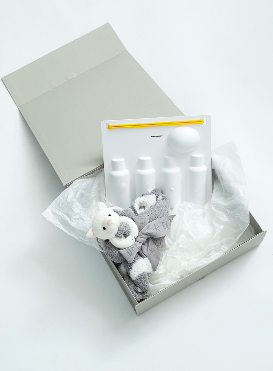 MammaBabyのスペシャルキットは、見た目もかわいいイラスト入りで、毎日のケアタイムがちょっと楽しくなるデザイン。