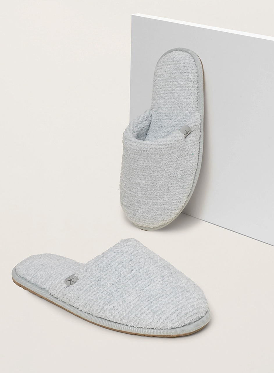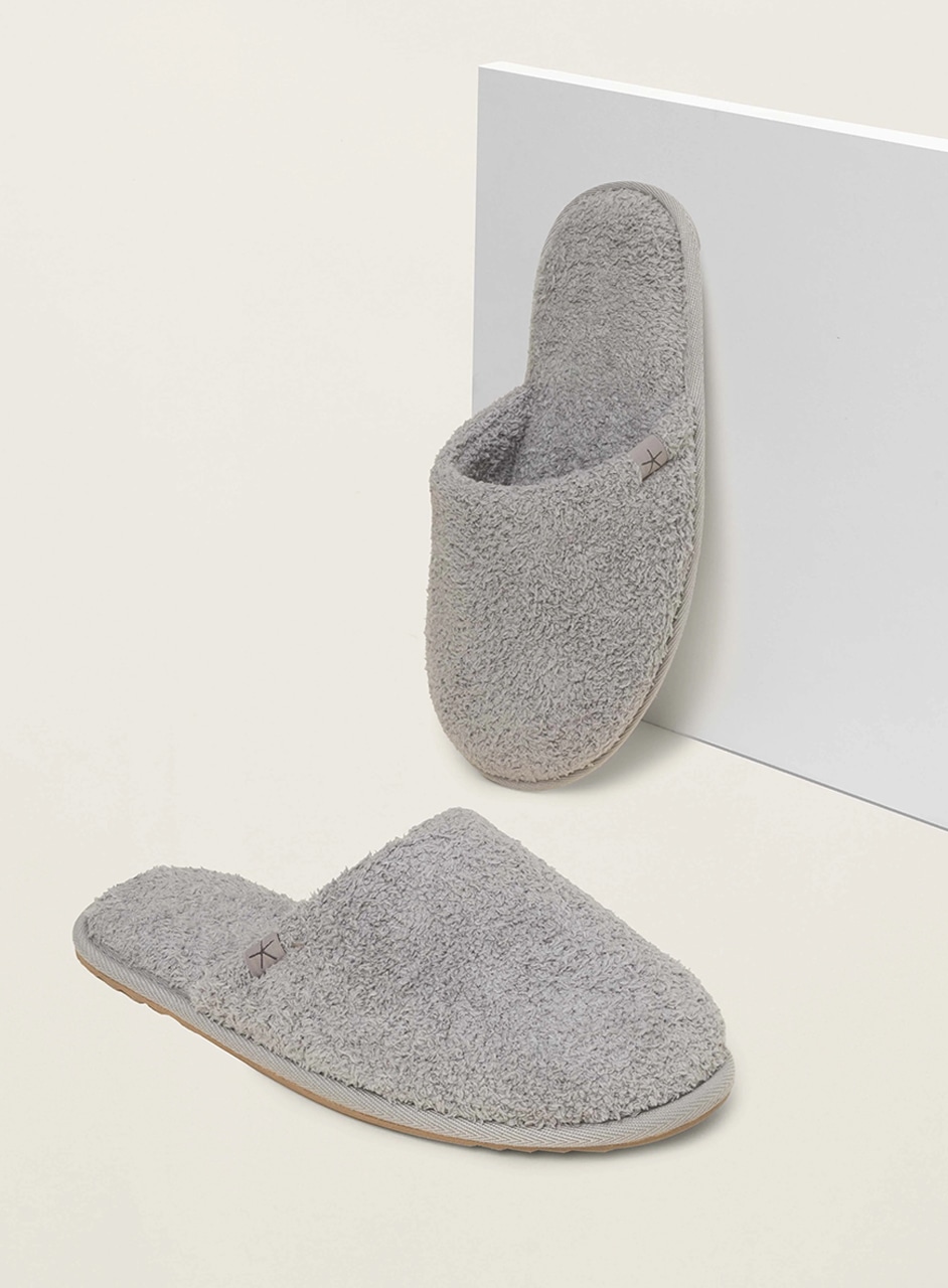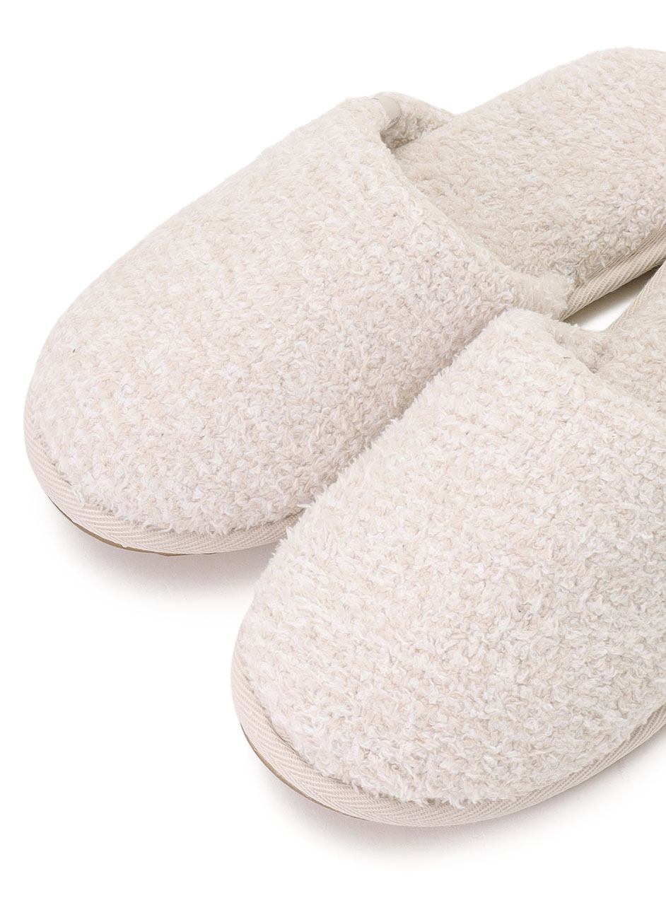足元をやさしく包み込み、心地よくリラックスできるコージーシック素材のユニセックス スリッパ。