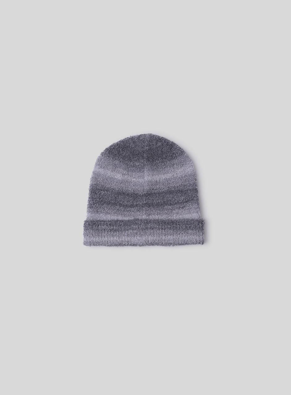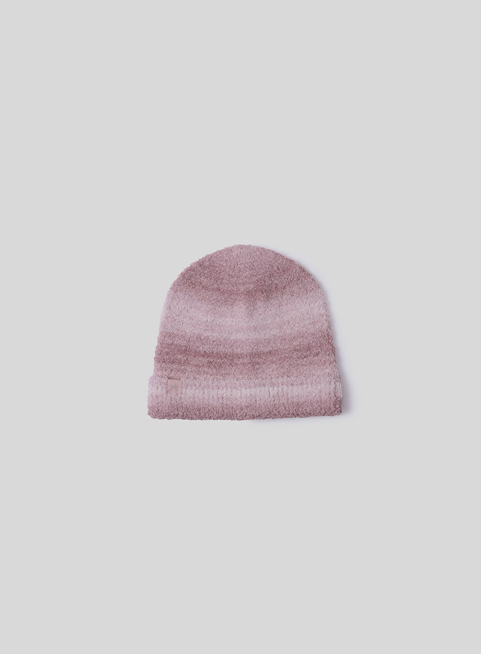 ユニークなスペースダイ編みが特徴の、超ソフトな素材で仕立てたベーシックなニット帽。