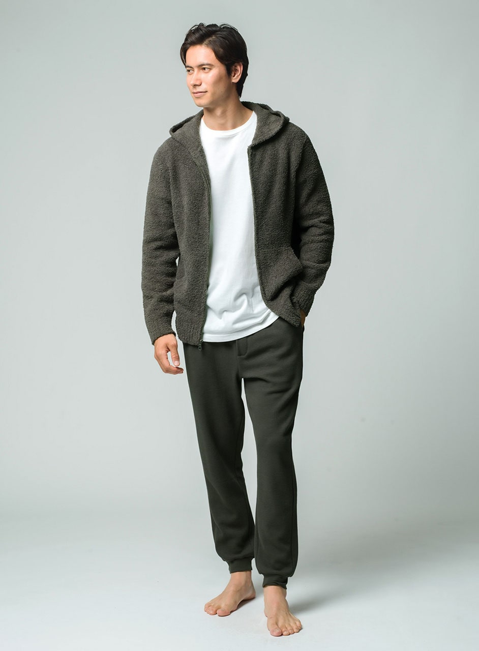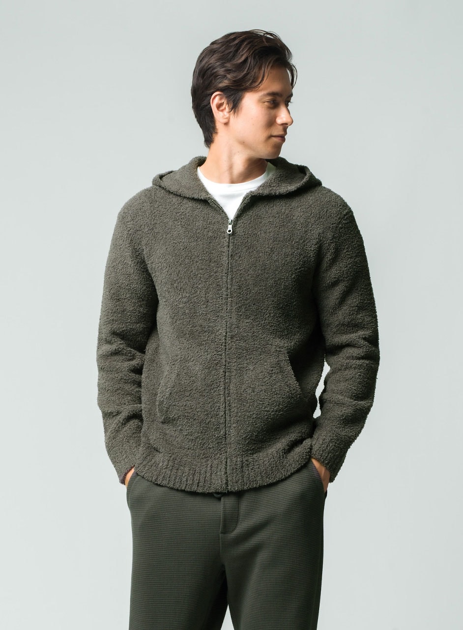 肌寒い朝にさっと羽織るルームウェアとして、また、アクティブな休日のワンマイルウェアとして。 日常のあらゆるシーンに、上質なリラックスタイムをプラスする一着です。