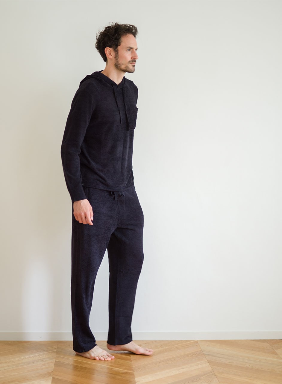 縫い目でつくられたサイドラインが特徴のニットパンツ。