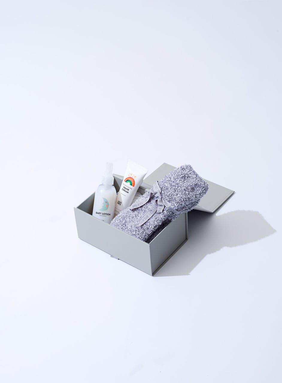 敏感肌にも安心して使える長時間潤いを保つローションとハンドクリーム、優しく足元をあたたかく包み込むソックスのセット。
