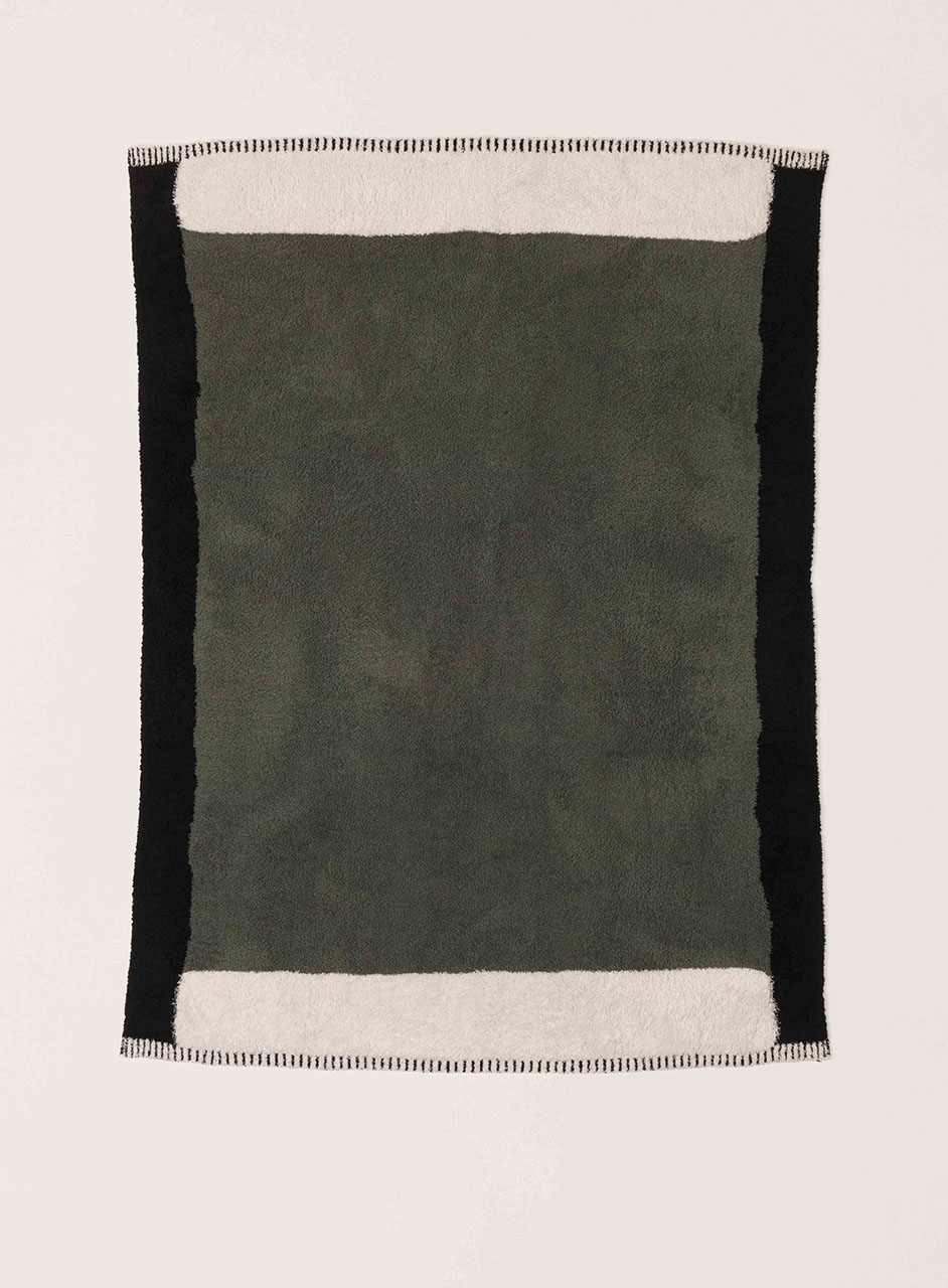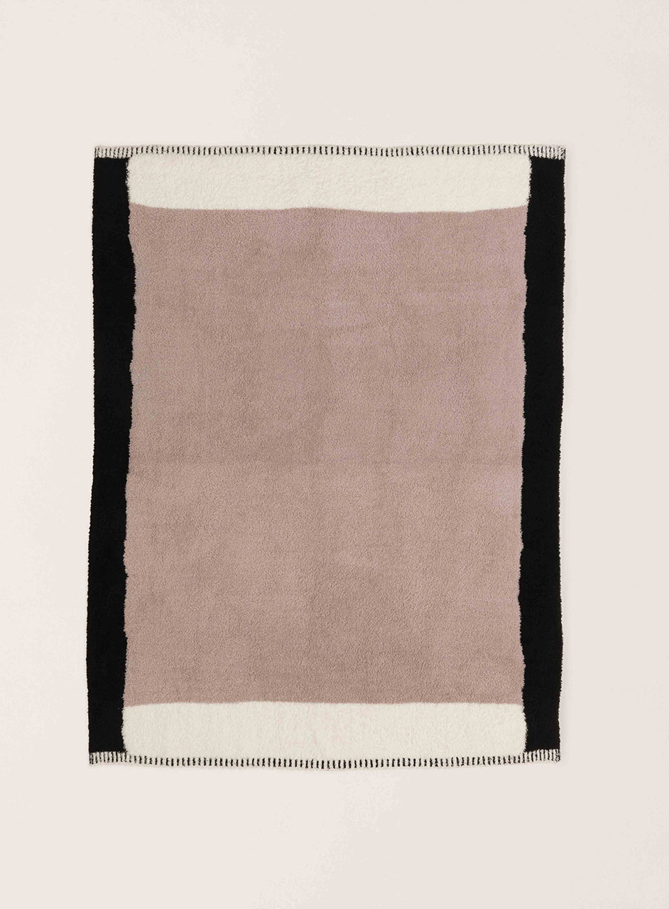 カラーブロックデザインをあしらったユニークなコージーシック素材のブランケット。
