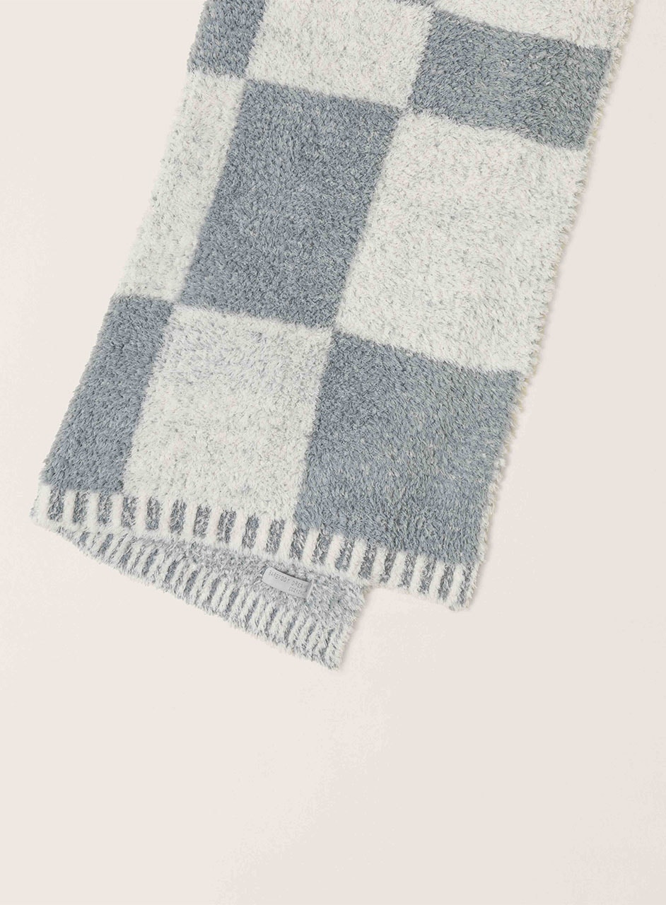 ランダムな大きさのチェッカー柄がユニークなブランケット。