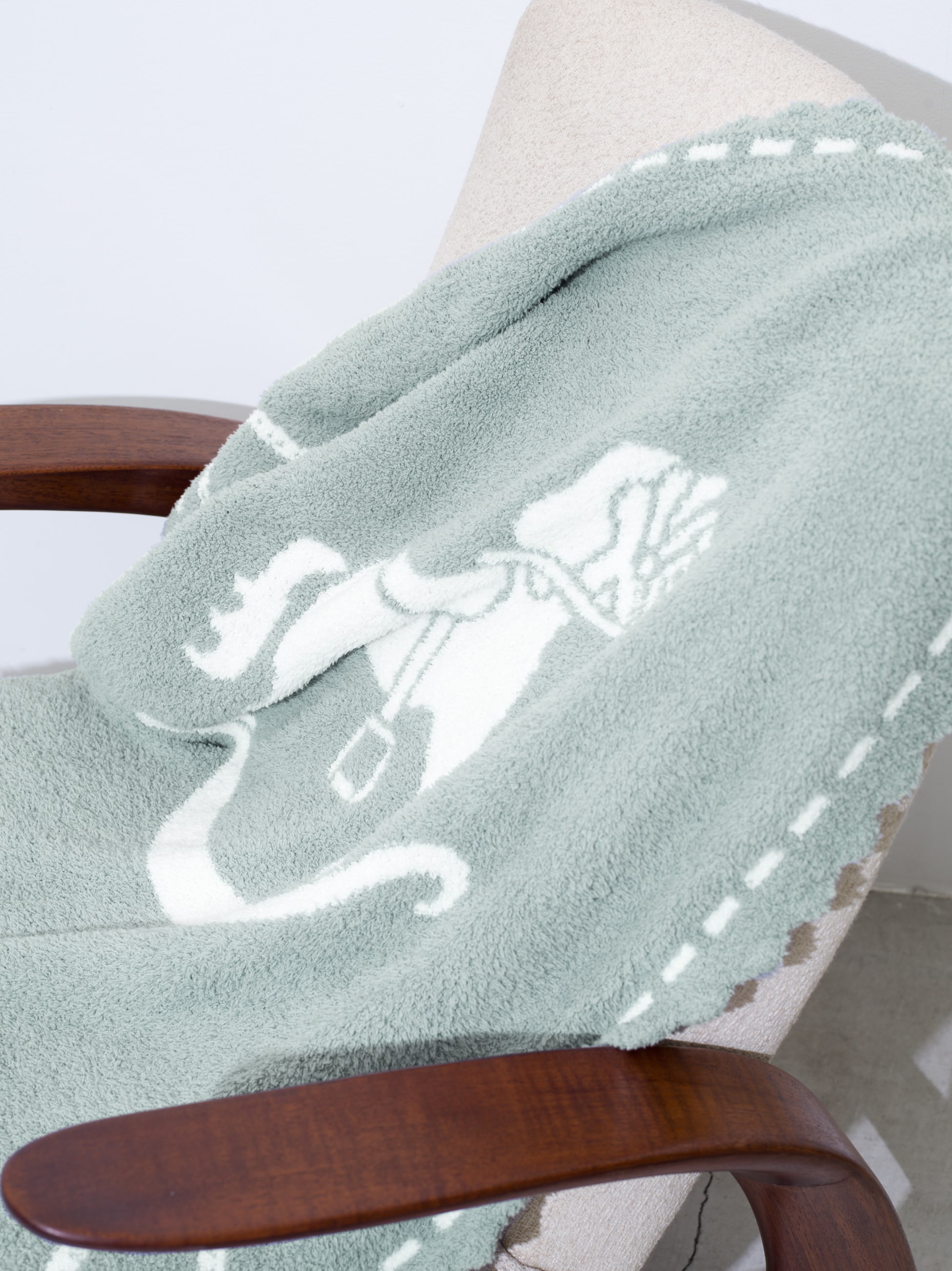 大人気ブランケットの日本別注カラーは、青みのかかった落ち着きのあるグリーンに仕上げました。