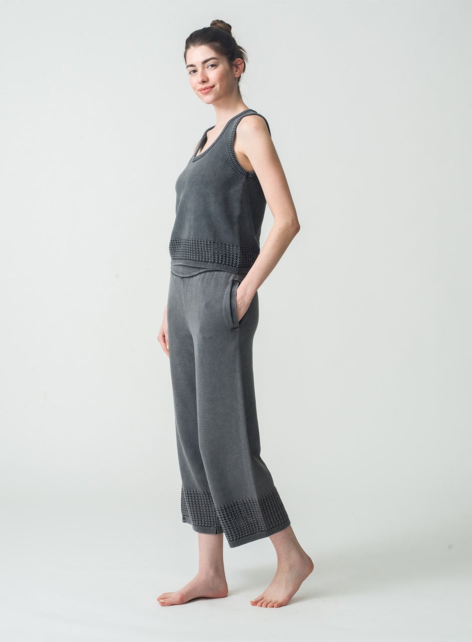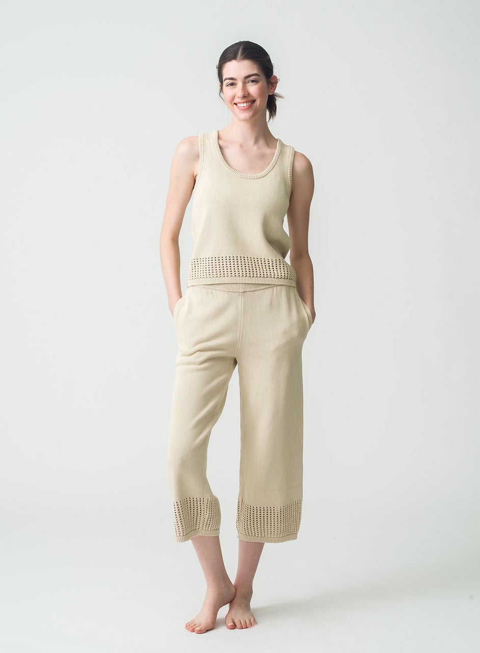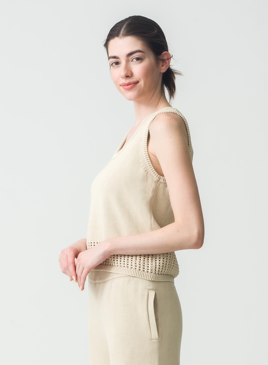 かぎ針編みが目を惹くニットタンク。
