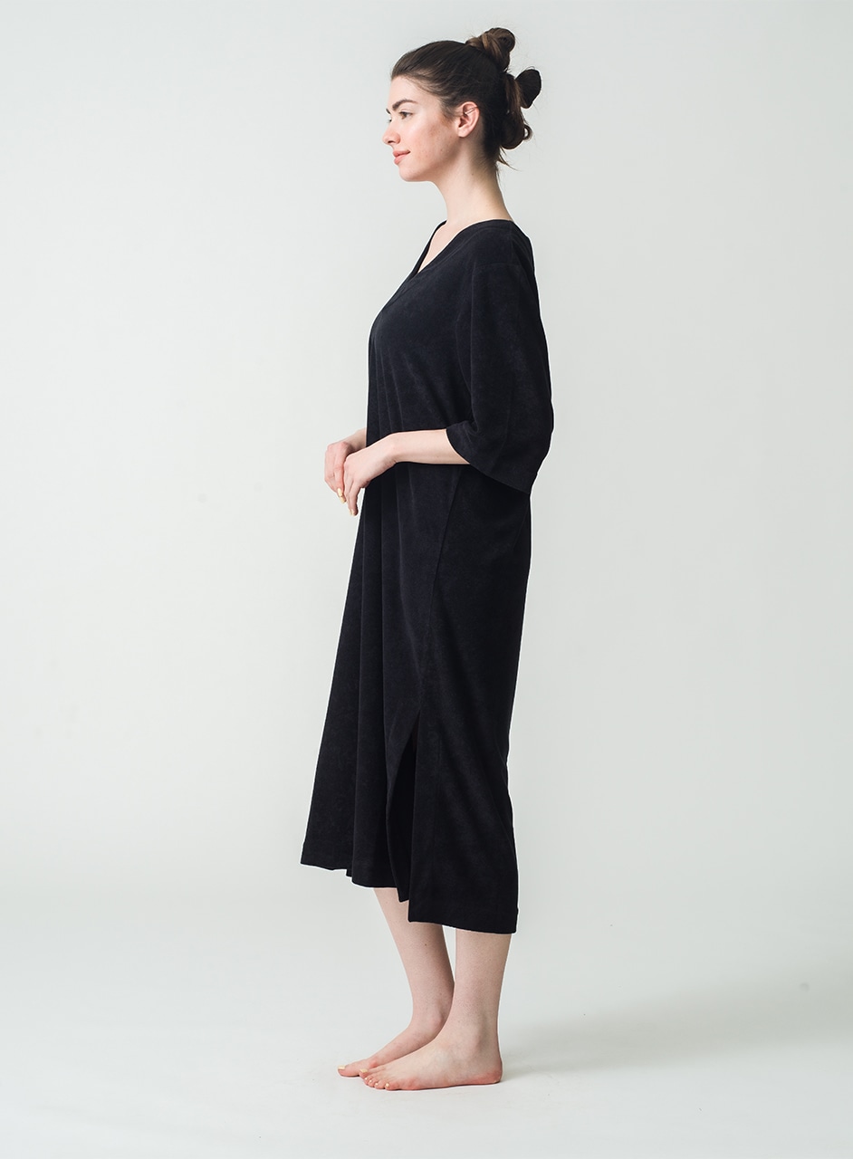 柔らかなパイル素材の「COZY TERRY」がもたらす心地よさと、美しいシルエットが融合した一枚。