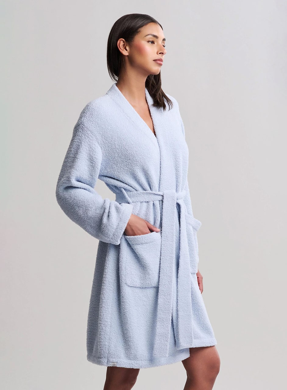 定番のコージーシック素材を使用した膝上丈のローブ。