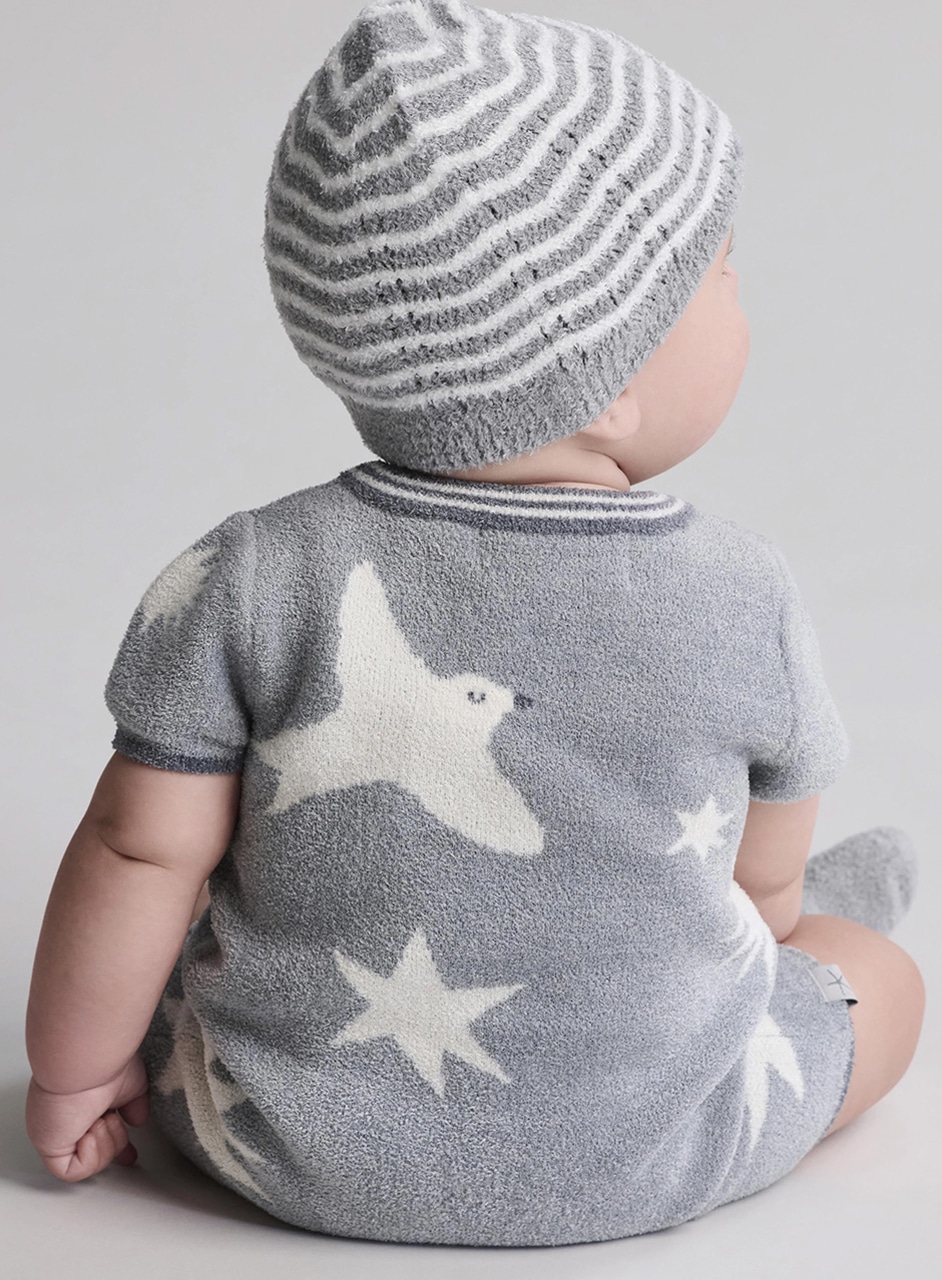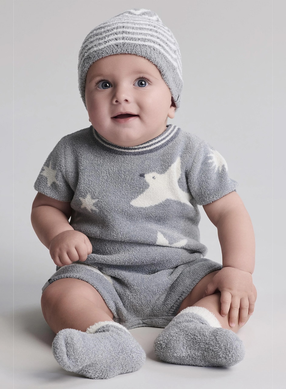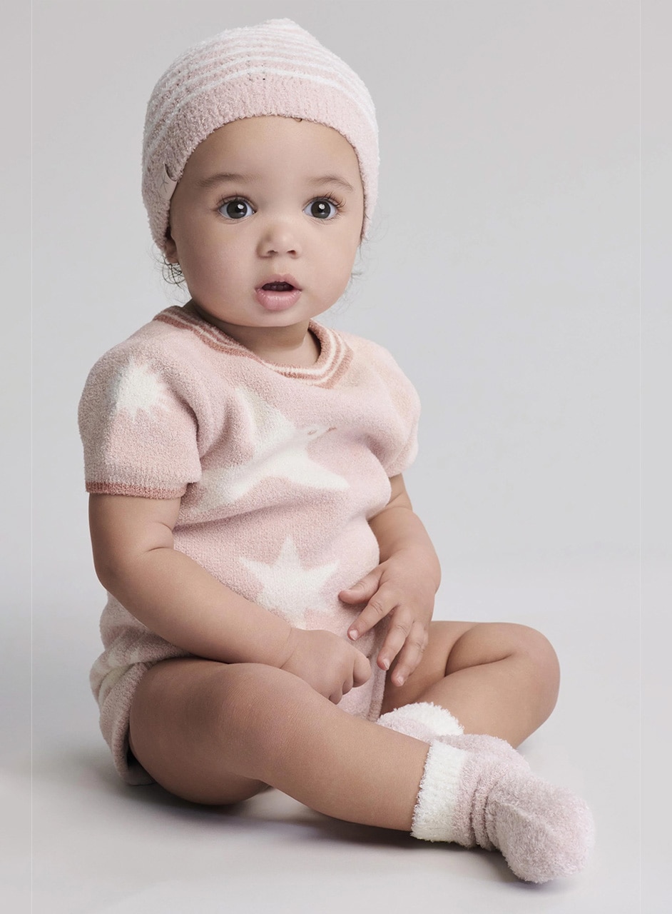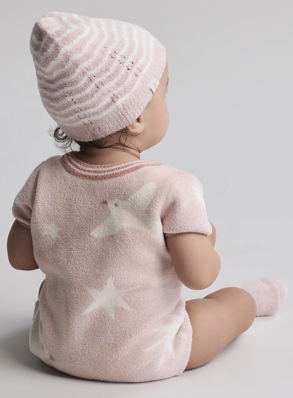 やわらかな肌触りと、ベアフット ドリームズならではの優しいカラーリングが魅力のベビービーニー。